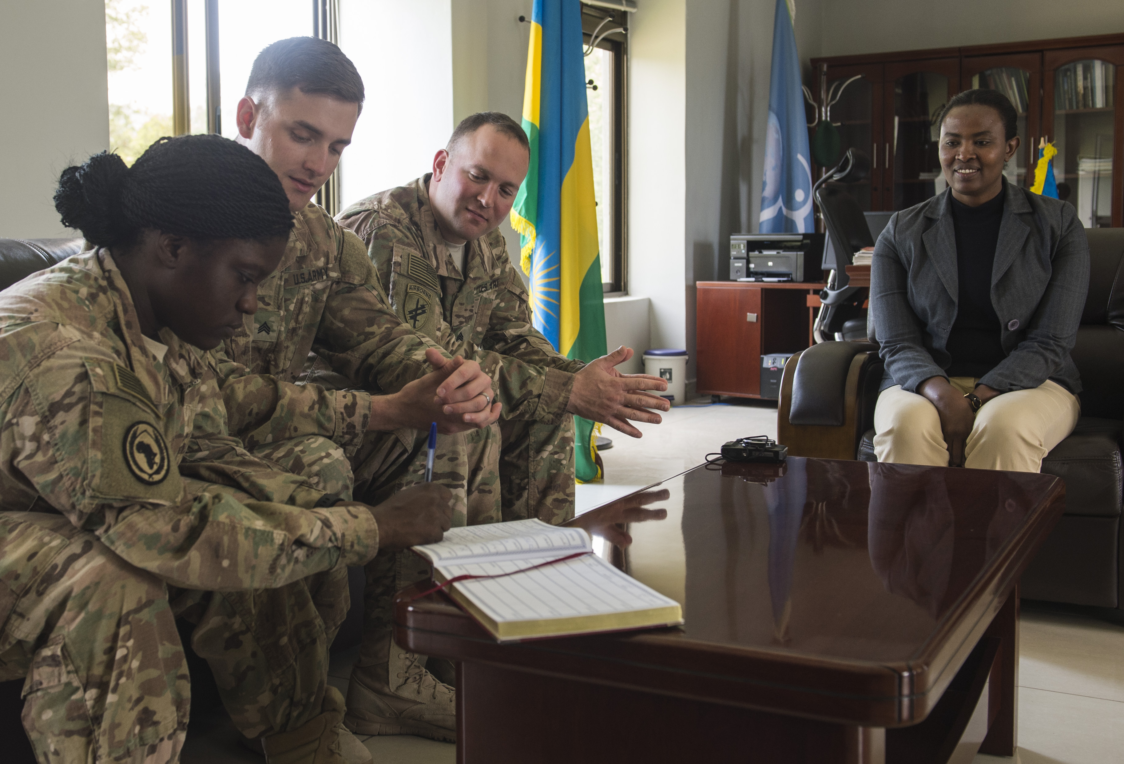 Civil affairs and information operations personnel from CJTF-HOA met with members of the Rwanda Defence Force to discuss capabilities and pre-deployment tasks for Rwandan CIMIC personnel.