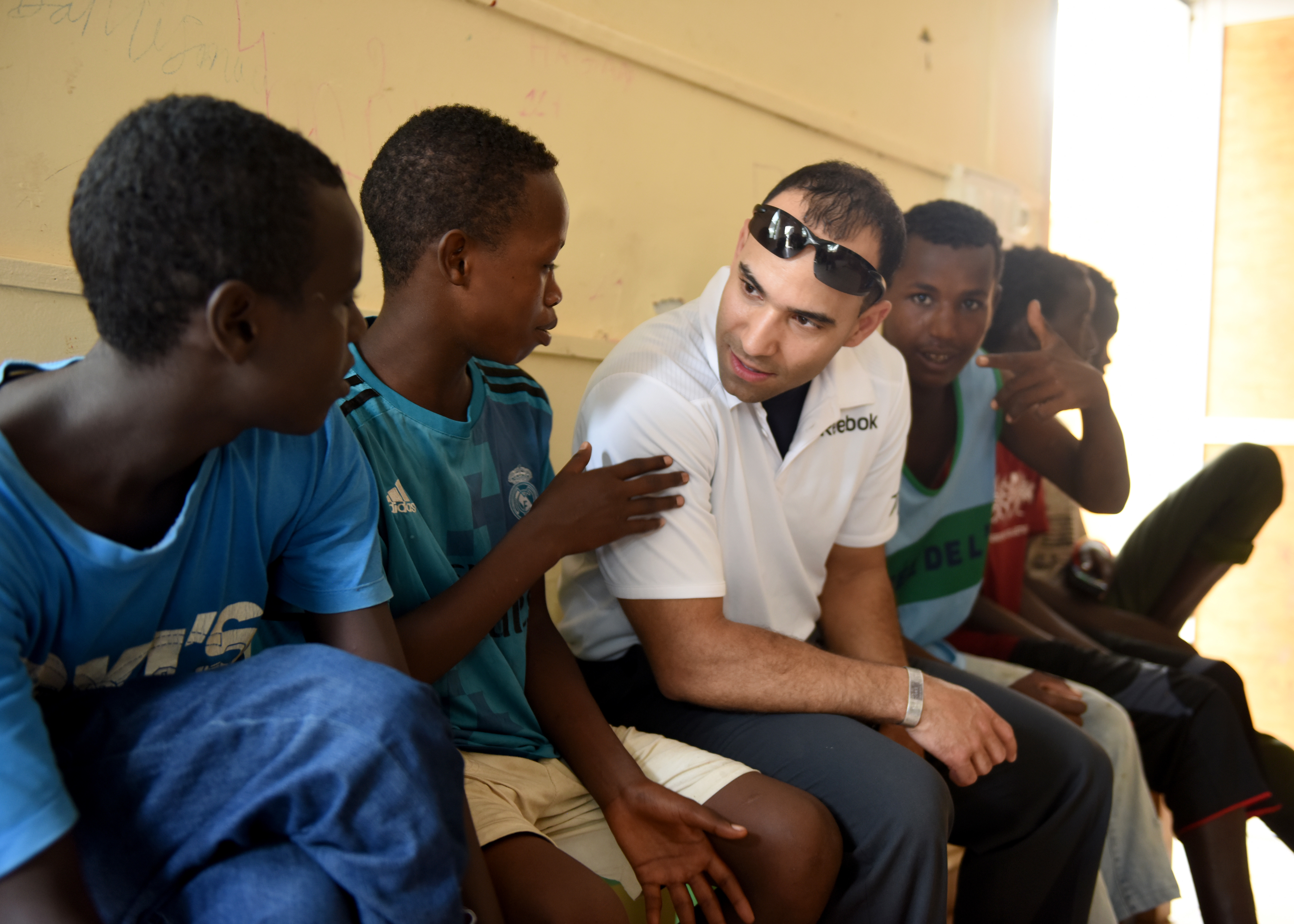 U.S. Army 1st Lt. Luis Alvarez, chaplain candidate with the Massachusetts National Guard, speaks with children at Caritas in Djibouti City, Djibouti, while visiting Combined Joint Task Force-Horn of Africa (CJTF-HOA), April 25, 2019. Caritas is a day center that provides care to nearly 100 children a day and enables CJTF-HOA members with a unique opportunity to interact with the local community through cultural exchanges in Djibouti City. (U.S. Air Force Photo by Staff Sgt. Franklin R. Ramos)