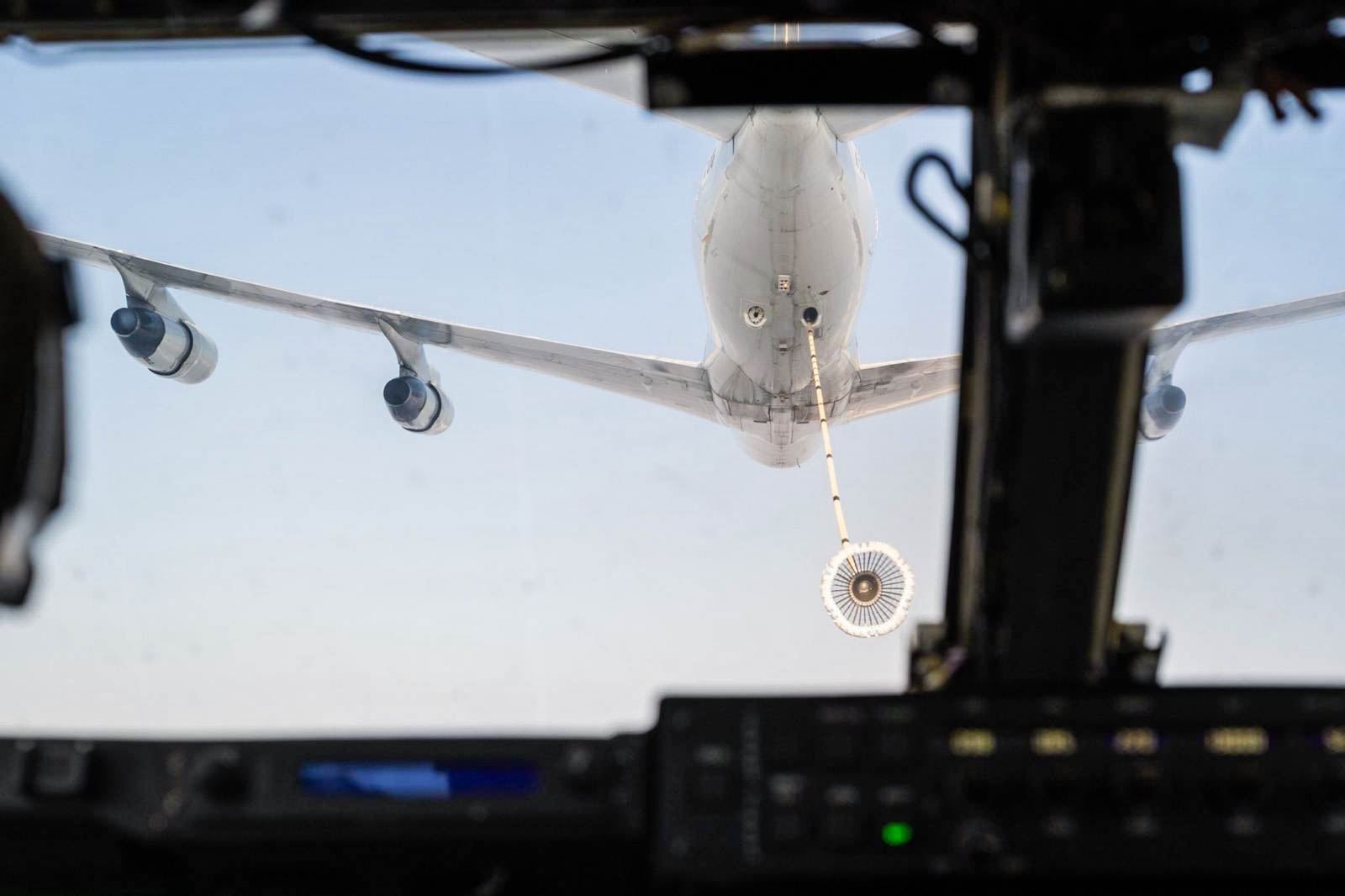 U.S. Marine Corps MV-22 Osprey tiltrotor aircraft, in support of Combined Joint Task Force - Horn of Africa (CJTF-HOA), refuels from a KC-707 over Africa during a readiness exercise over on Sept. 23, 2024. This exercise was a key component of CJTF-HOA’s mission to enhance crisis response capabilities and foster military cooperation with regional partners and U.S. embassies. More than 150 personnel participated, conducting joint training across 67,000 miles, including air refueling, logistical operations, and ground and medical exercises. These efforts showcased U.S. readiness to address security challenges while strengthening the strategic partnership between U.S. and Gabonese forces. (Courtesy Photo)