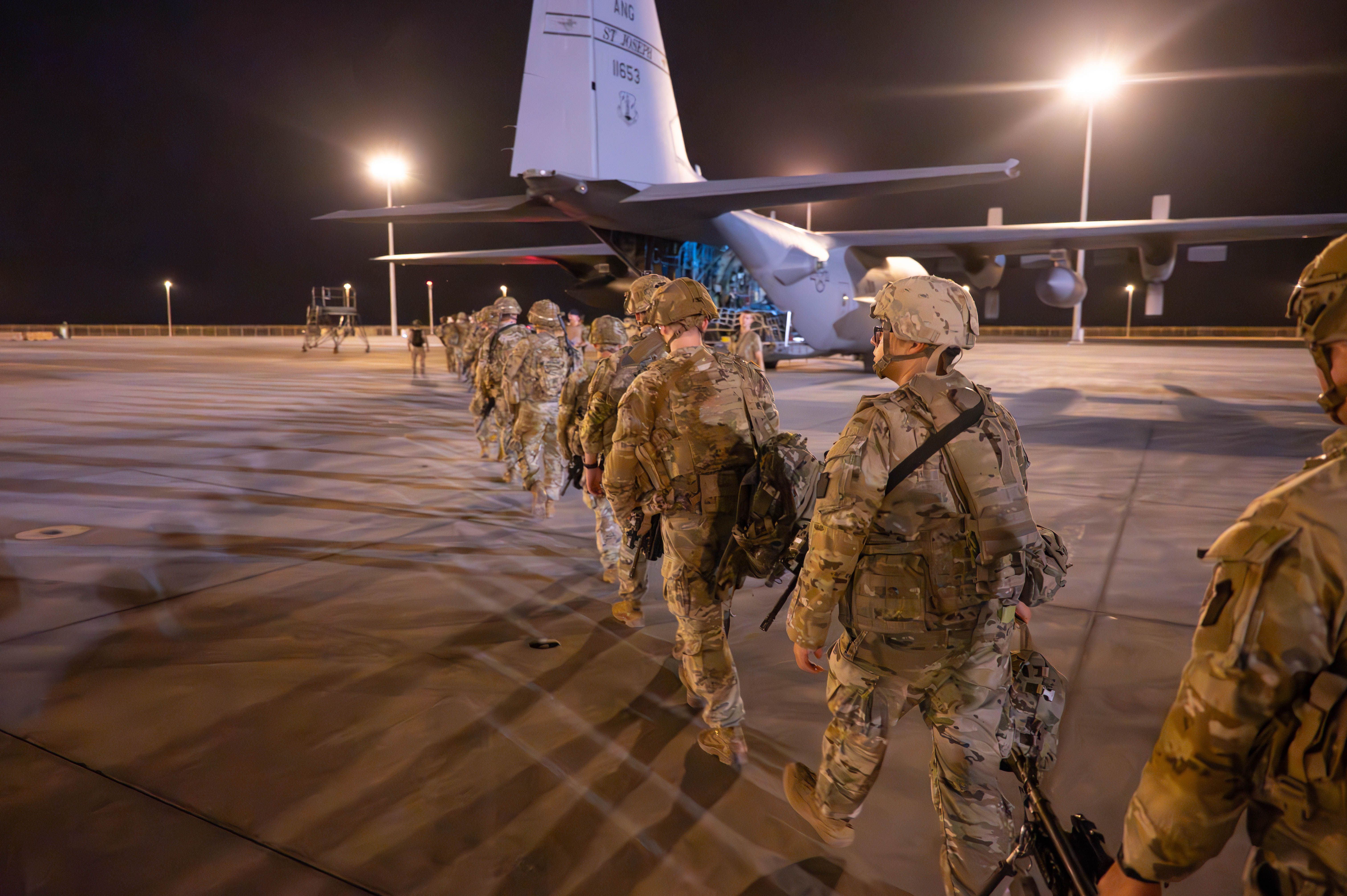 U.S. Army soldiers from the East Africa Response Force, in support of Combined Joint Task Force - Horn of Africa (CJTF-HOA), board a C-130 Hercules aircraft to deploy to the U.S. Embassy in Libreville, Gabon, as part of a multi-day exercise on Sept. 14, 2024, at Camp Lemonnier, Djibouti. This exercise was a key component of CJTF-HOA’s mission to enhance crisis response capabilities and foster military cooperation with regional partners and U.S. embassies. More than 150 personnel participated, conducting joint training across 67,000 miles, including air refueling, logistical operations, and ground and medical exercises. These efforts showcased U.S. readiness to address security challenges while strengthening the strategic partnership between U.S. and Gabonese forces. (U.S. Army photo by SSG Aleksander Fomin)