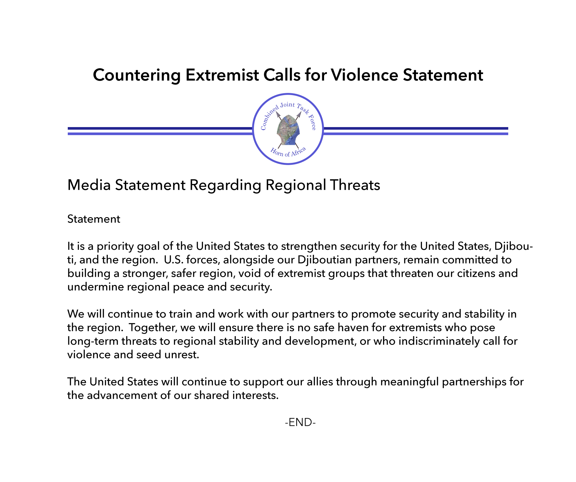 Countering Extremist Calls for Violence Statement Press Release