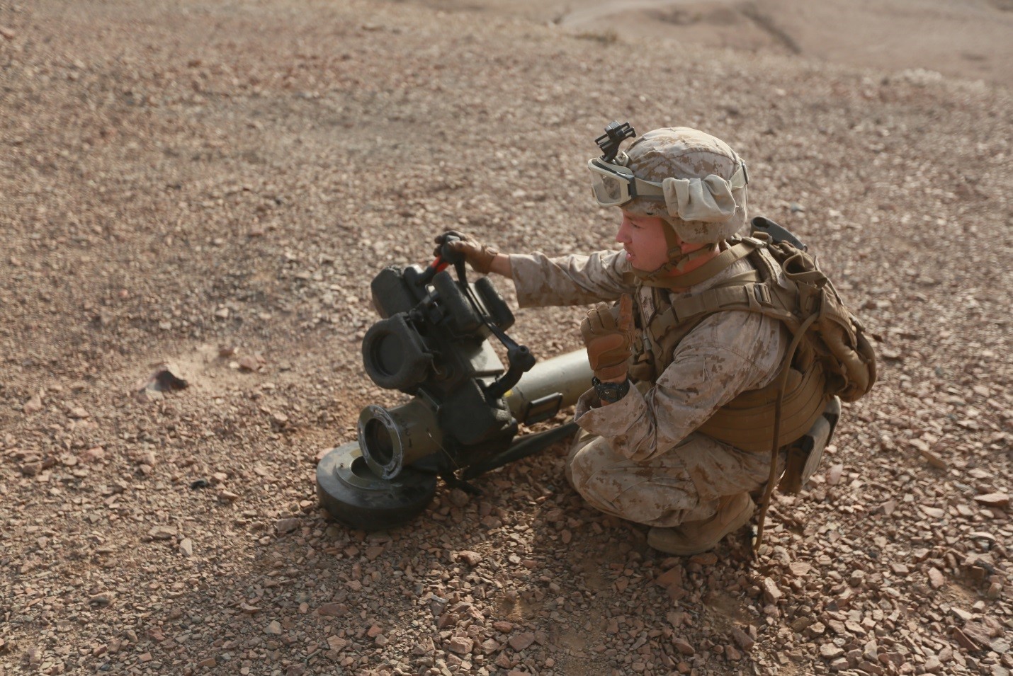 ARTA BEACH, Djibouti (July 26, 2015) U.S. Marines with Combined Anti-Armor Team 1, Weapons Company, Battalion Landing Team 3rd Battalion, 1st Marine Regiment, 15th Marine Expeditionary Unit, establish their battle-sight zeros. Elements of the 15th MEU are ashore in Djibouti for sustainment training to maintain and enhance the skills they developed during their pre-deployment training period. The 15th MEU is currently deployed in support of maritime security operations and theater security cooperation efforts in the U.S. 5th and 6th Fleet areas of operation. (U.S. Marine Corps photo by Gunnery Sgt. Eddy Arce/Released)