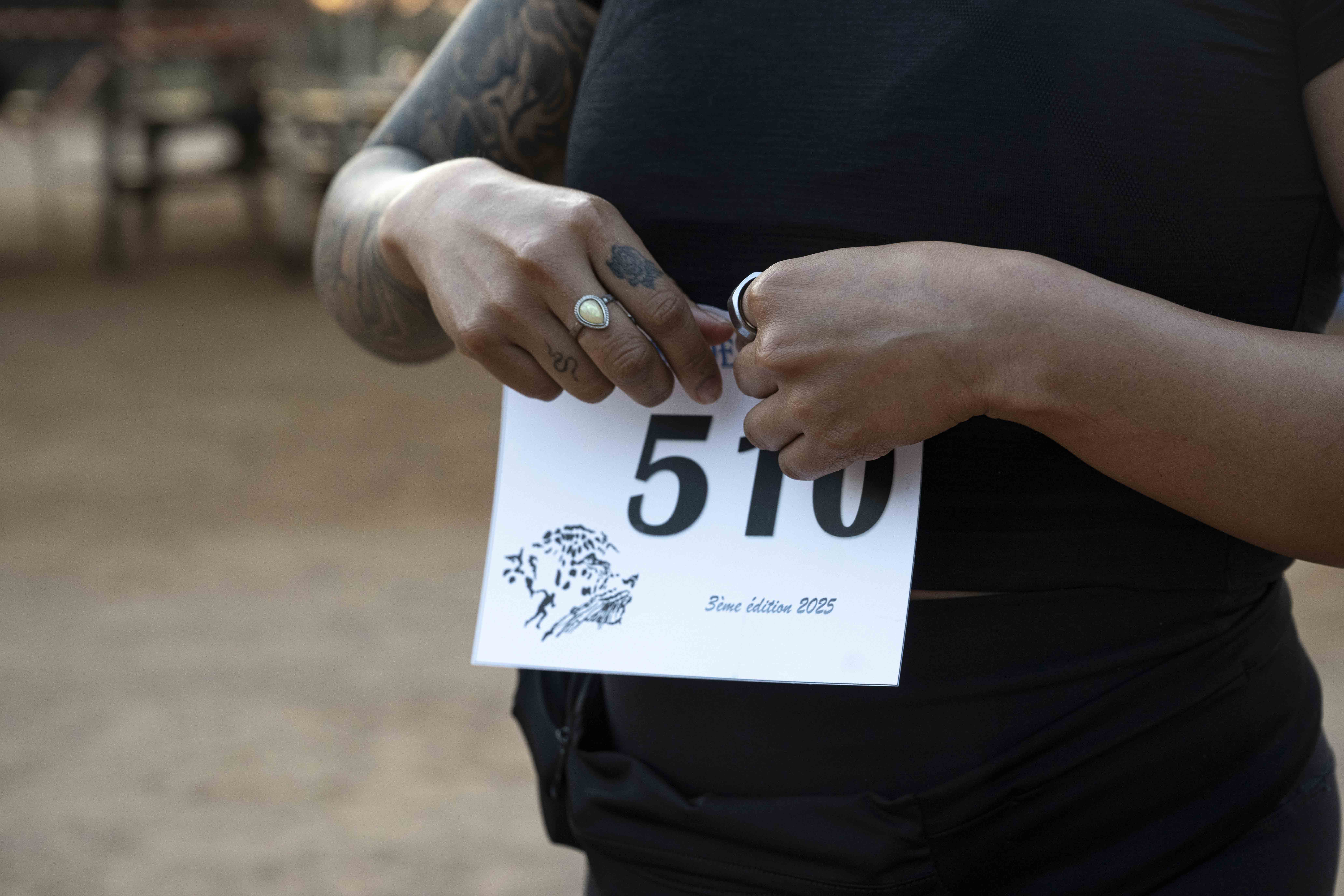 A participant pins on their number before the Cross du Refuge Décan 10k at the Decan Wildlife Refuge, Djibouti, Jan. 31, 2025. The Refuge’s mission is to protect endangered animals, release them when possible, and currently has more than 100 species. (U.S. Air Force photo by Airman 1st Class Joseph Bartoszek)