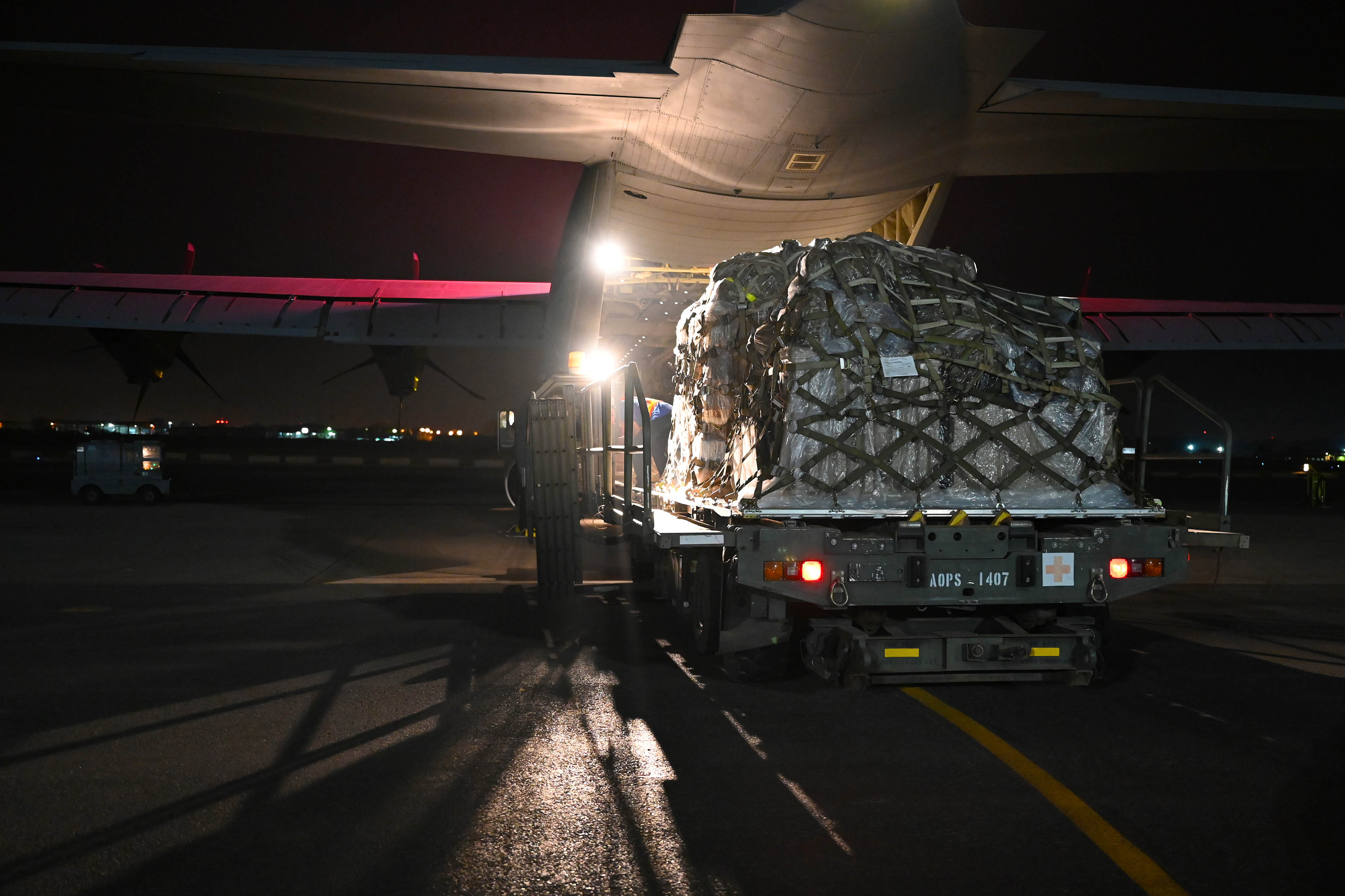 U.S. Army Soldiers from Charlie Troop, 2-106 Cavalry, Task Force Bayonet, deployed with the East Africa Response Force (EARF) in support of Combined Joint Task Force - Horn of Africa (CJTF-HOA), load pallets of cargo on a C-130J Super Hercules, assigned to the 75th Air Expeditionary Squadron during an Emergency Deployment Readiness Exercise (EDRE) at Camp Lemonnier, Djibouti (CLDJ), Sep. 25, 2020. The EARF is responsible for providing combat-ready rapid deployment capabilities to support crisis operations on the African continent. (U.S. Air Force photo by Staff Sgt. Dana J. Cable)