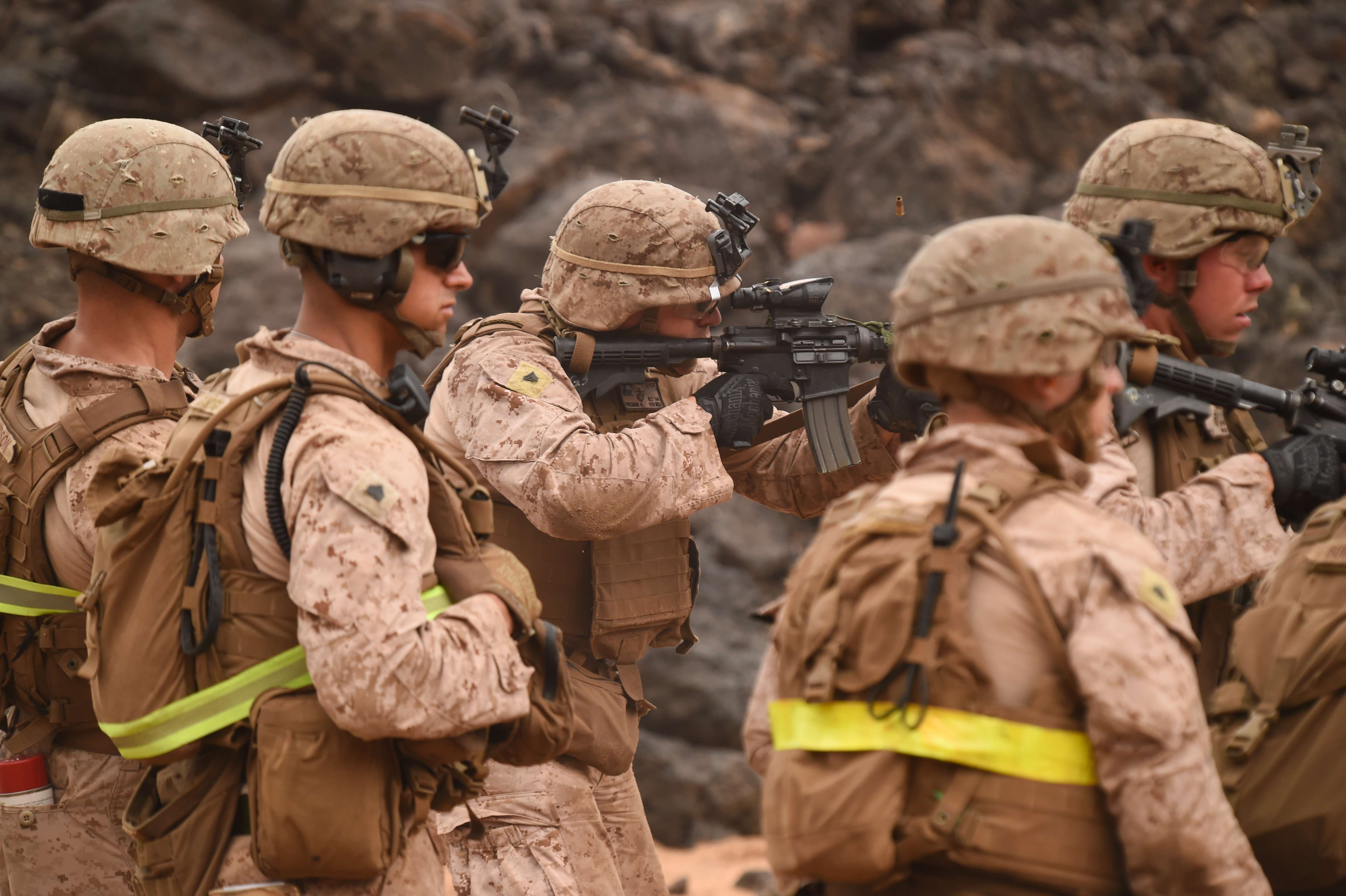 A remote cove near Arta Beach in Djibouti provides a safe live-fire weapons range for U.S. Marine Corps members with Alpha Company, 1st Battalion, 11th Marine Expeditionary Unit, Feb.14, 2017. Training time on the range allows Marines to maintain their respective skills and proficiencies. (U.S. Air National Guard photo by Staff Sgt. Penny Snoozy)