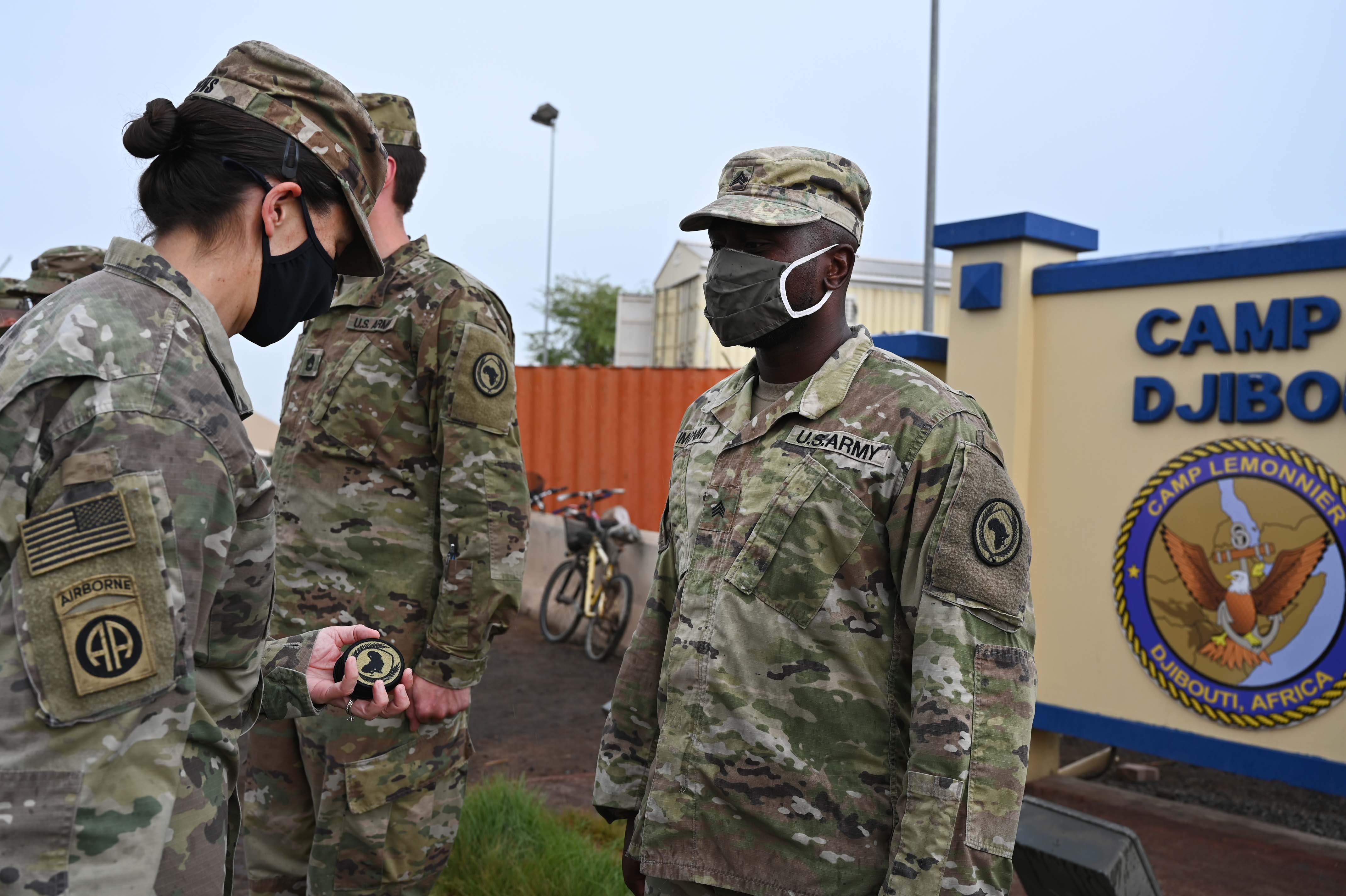 A sampling of some of the female leaders currently at Camp Lemonnier, Djibouti, Aug. 25, 2020. Women's Equality Day, Aug. 26, marks the 100th anniversary of the 19th Amendment to the Constitution, which guaranteed women the right to vote. In the photograph: U.S. Army Col. Deitra Trotter (front-center), Director of Intelligence, Combined Joint Task Force - Horn of Africa (CJTF-HOA); U.S. Navy Lt. Cmdr. Lisa Good (front-right), Deputy Director, Contingency Contracting Office, CJTF-HOA; U.S. Navy Lt. Cmdr. Michelle Heppner (front-left), Executive Officer to the Commanding General, CJTF-HOA; U.S. Army Capt. Candice Heins (back-right), commander, 760th Engineer Vertical Construction Company, CJTF-HOA and Sgt. Maj. Shadonika Crawford (back-left), Equal Opportunity Advisor, CJTF-HOA (U.S. Air Force photo by Staff Sgt. Dana J. Cable)