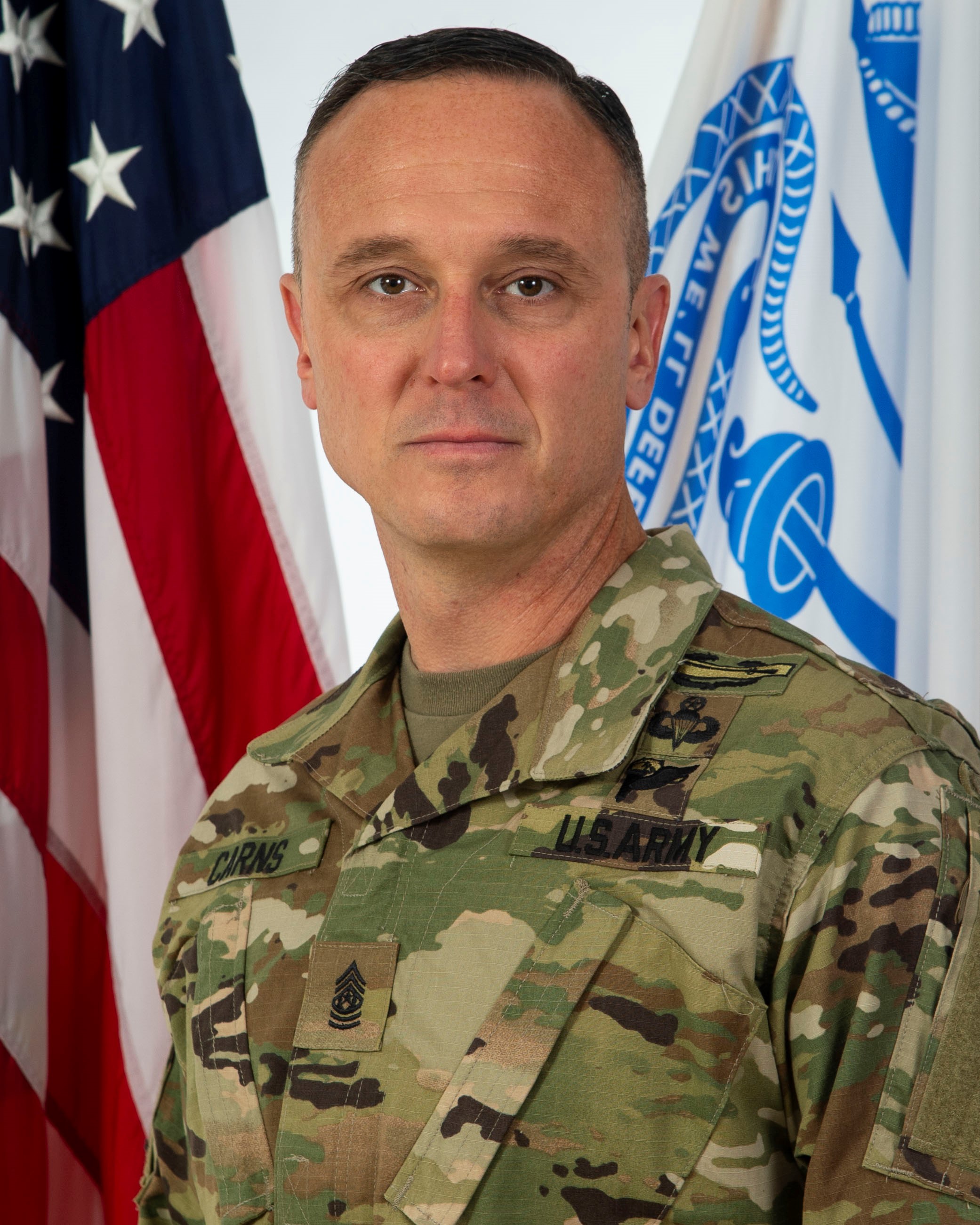 U.S. Army Command Sgt. Maj. Shawn Carns, command senior enlisted leader (CSEL), Combined Joint Task Force—Horn of Africa (CJTF-HOA), provides closing remarks after receiving CJTF-HOA CSEL responsibilities at Camp Lemonnier, Djibouti, July 22, 2019. Carns enlisted in the Army in July 1992 as an Infantryman from Indiana, Pa., and has served in every key leadership position in the Infantry from team leader to command sergeant major. (U.S. Air Force Staff Sgt. J.D. Strong II)