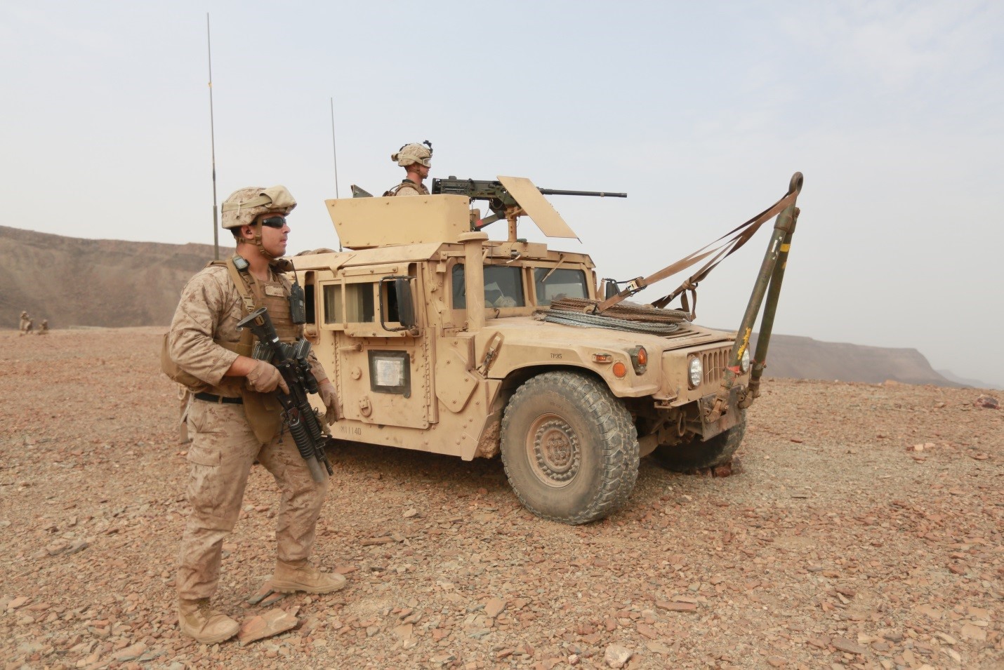 150728-M-ZZ999-148 ARTA BEACH, Djibouti (July 28, 2015) U.S. Marines with Combined Anti-Armor Team 1, Weapons Company, Battalion Landing Team 3rd Battalion, 1st Marine Regiment, 15th Marine Expeditionary Unit, set up a support-by-fire position during sustainment training. Elements of the 15th MEU are ashore in Djibouti for sustainment training to maintain and enhance the skills they developed during their pre-deployment training period. The 15th MEU is currently deployed in support of maritime security operations and theater security cooperation efforts in the U.S. 5th and 6th Fleet areas of operation. (U.S. Marine Corps photo by Gunnery Sgt. Eddy Arce/Released)