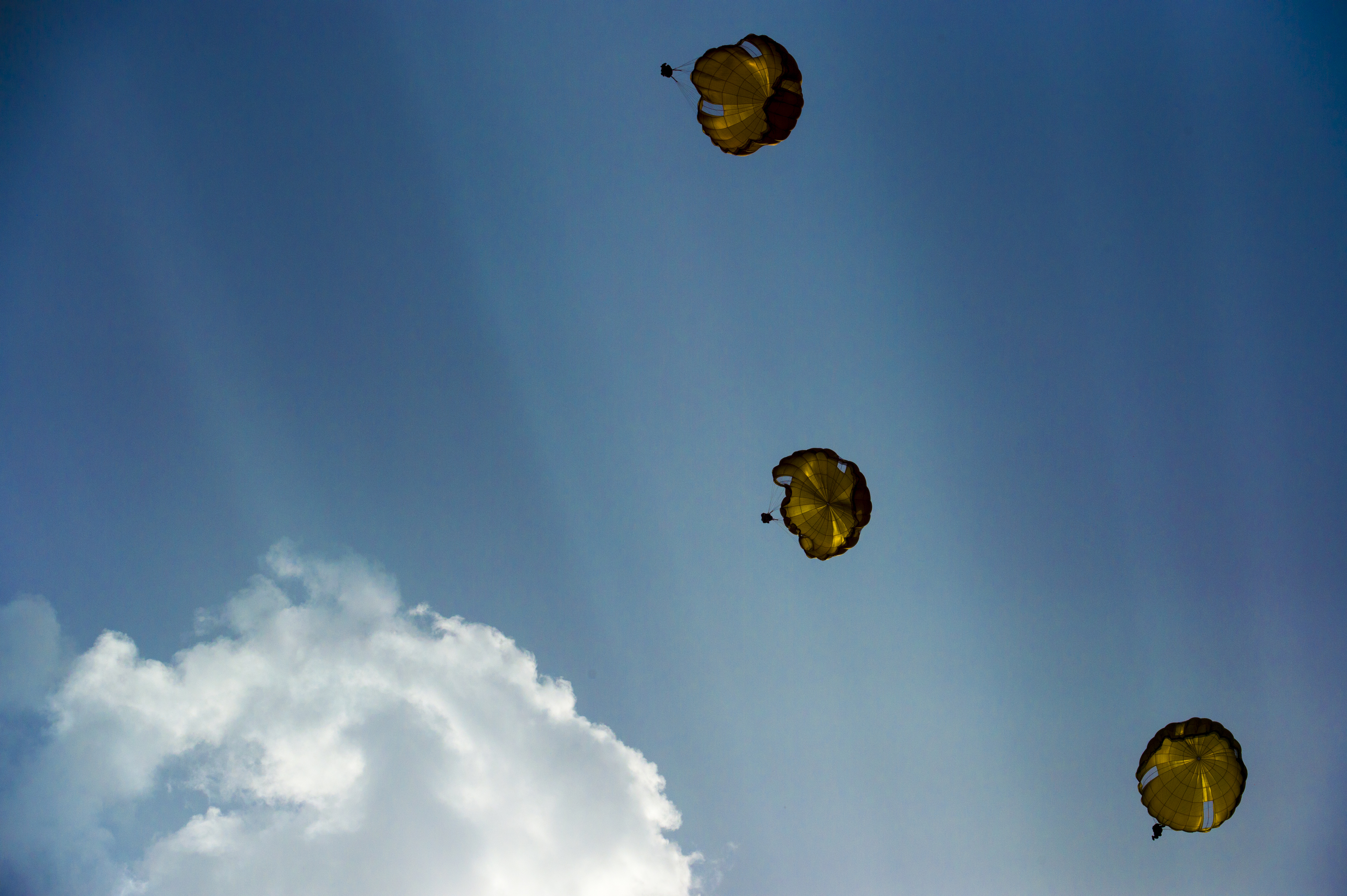 U.S. American and French Armed Forces parachute together on D-Day 74th Anniversary
