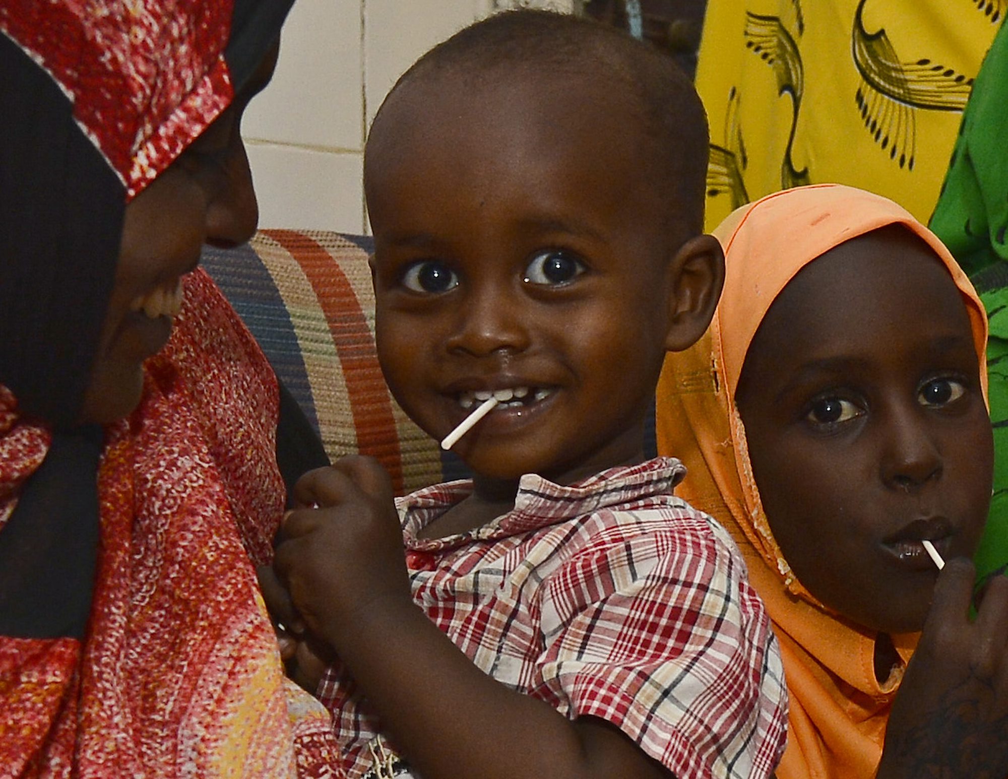 A child eats a lollipop after a medical checkup at the Ali Sabieh Medical Clinic in Djibouti, Africa, Sept. 12, 2015. The 404th Civil Affairs Battalion team, assigned to Combined Joint Task Force-Horn of Africa, partnered with Djibouti’s Ministry of Health to deliver specialty medical care and medication for Djiboutians. (U.S. Air Force photo by Senior Airman Nesha Humes)