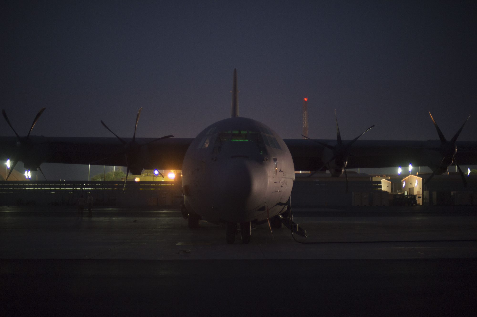 A U.S. Air Force C-130J Hercules rests on the airfield in preparation for cargo and passengers to be transported during an East African Response Force validation exercise May 27, 2016, at Camp Lemonnier, Djibouti. The Hercules and its crewmembers are deployed from Dyess Air Force Base, Texas. (U.S. Air Force photo by Staff Sgt. Eric Summers Jr.)