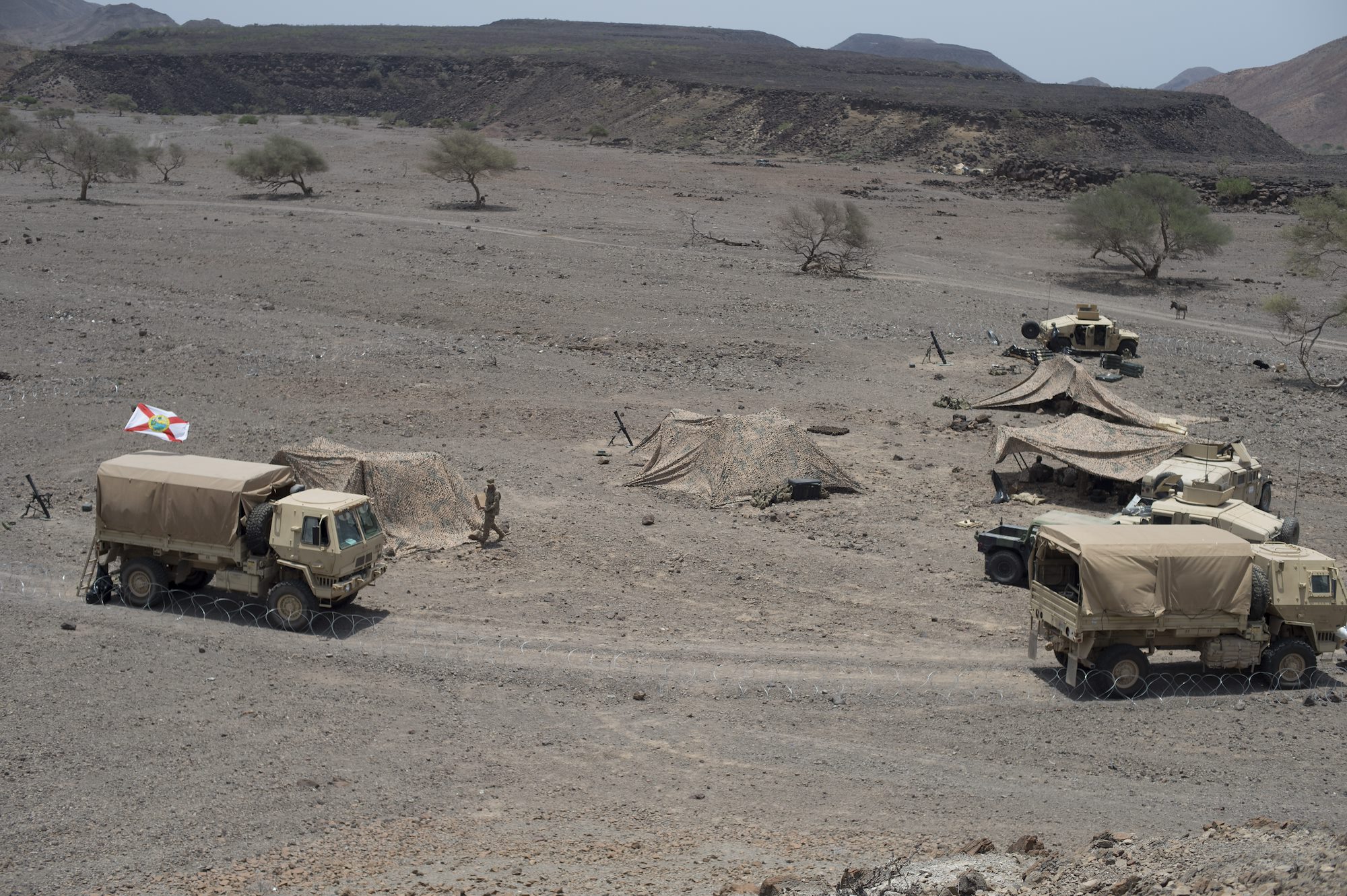 U.S. Army Brig. Gen. Matthew Brown, Combined Joint Task Force - Horn of Africa commanding general, presided over the CJTF- HOA change of responsibility from U.S. Air Force Chief Master Sgt. Ted Braxton, outgoing CJTF- HOA command senior enlisted leader, to U.S. Marine Corps Sgt. Maj. Mike Brown, incoming CJTF-HOA CSEL, at Camp Lemonnier, Djibouti, Aug. 11.