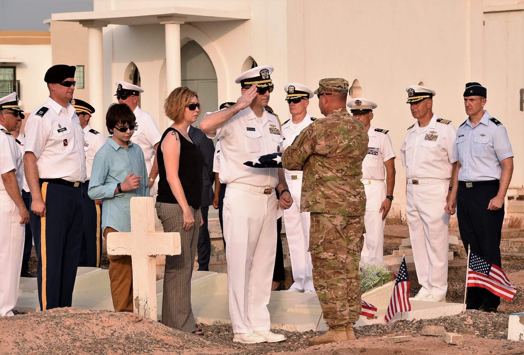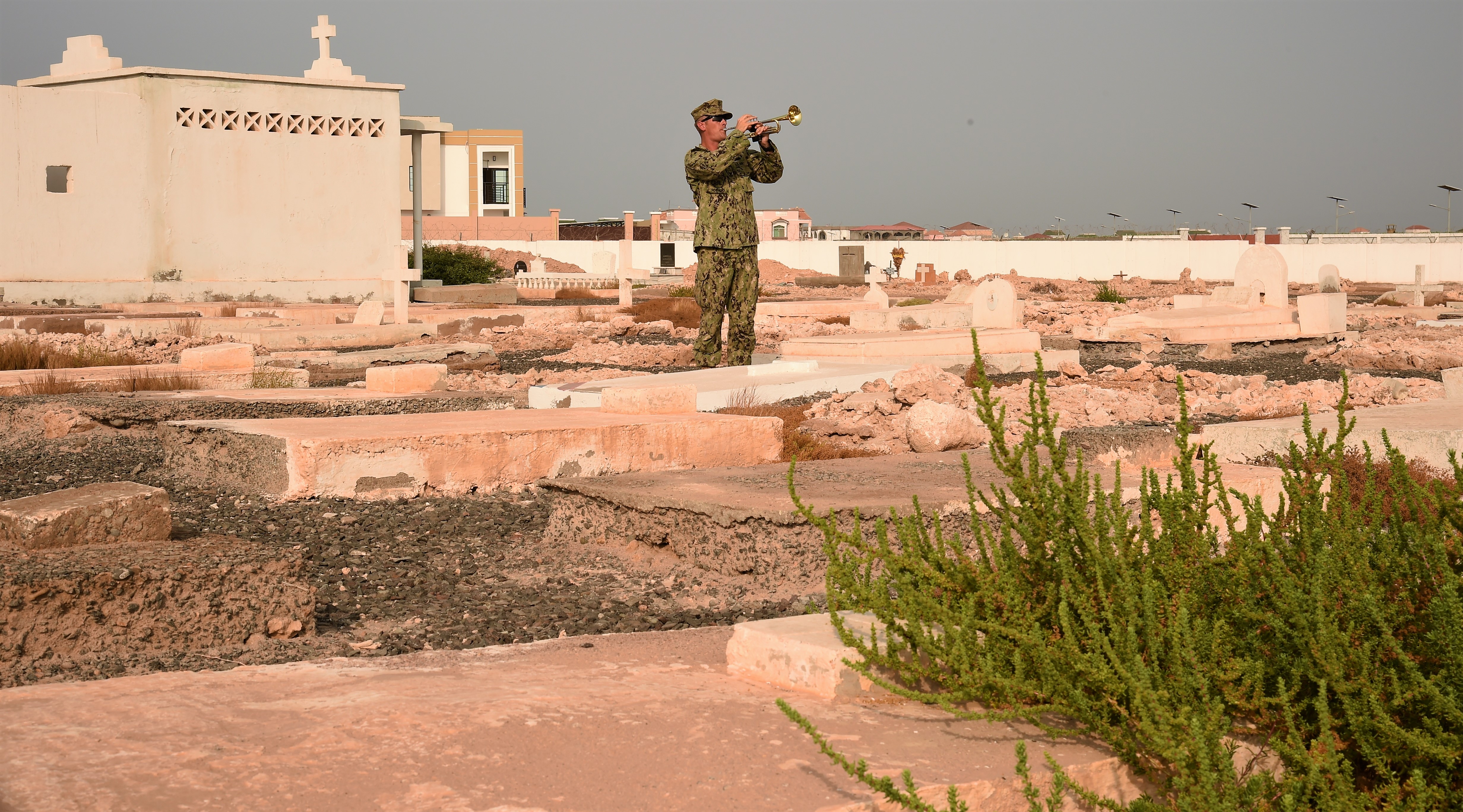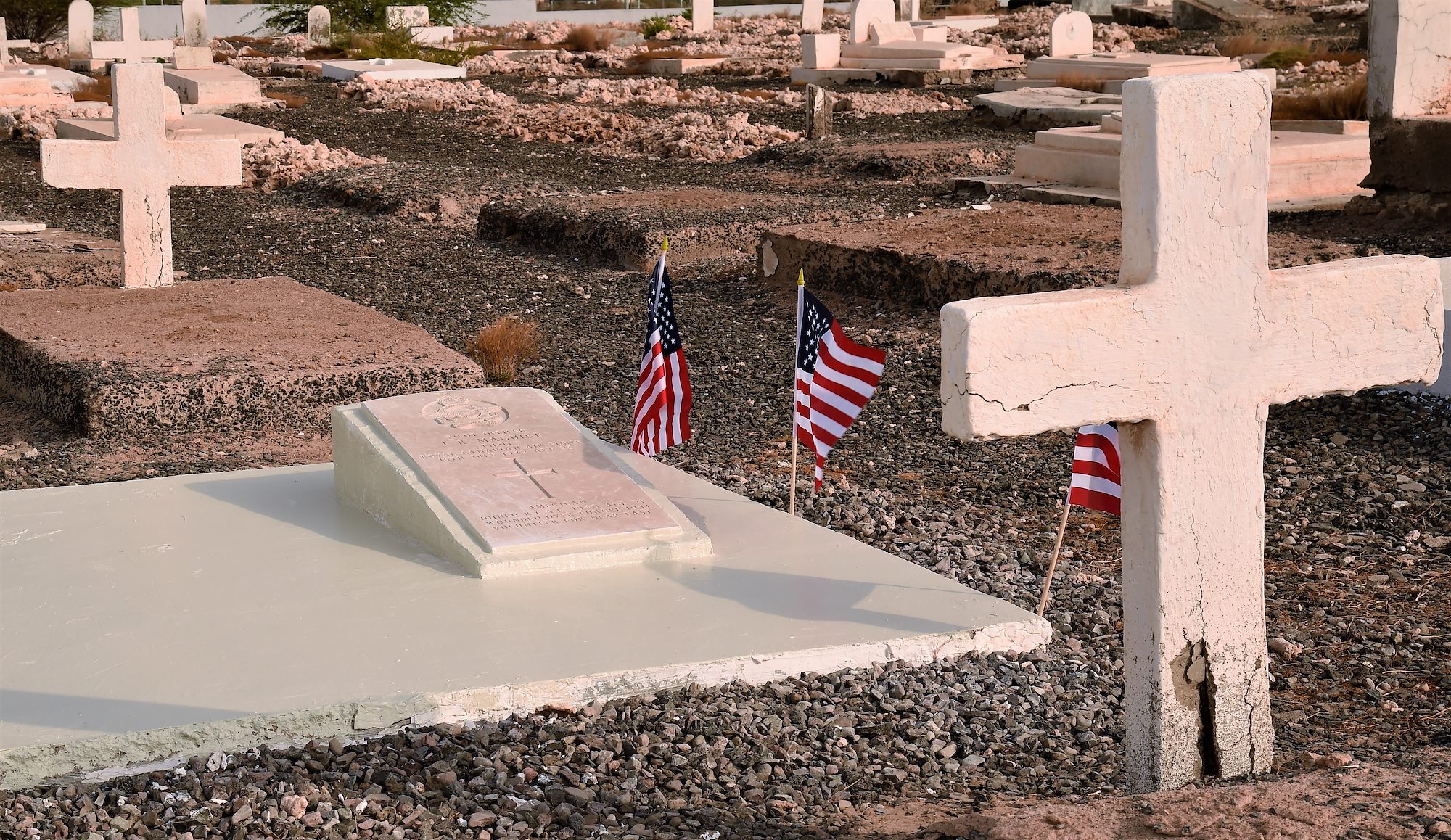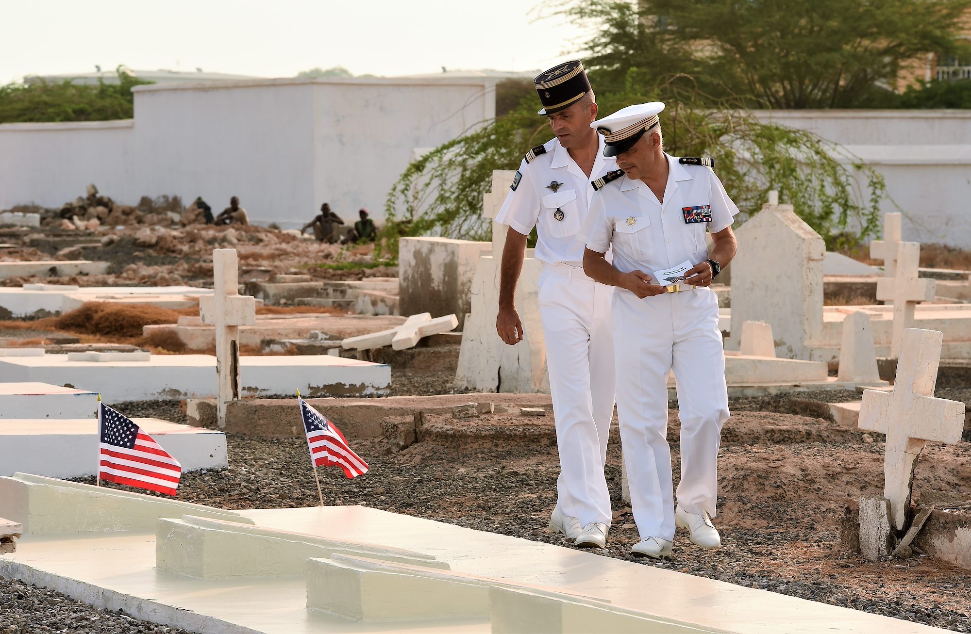 Brig. Gen. Howard Purcell, Combined Joint Task Force – Horn of Africa deputy commander, and approximately 50 U.S. and French military members and civilians assembled at the Djibouti New European Cemetery May 29, to honor the solitary native-U.S. military member buried here.