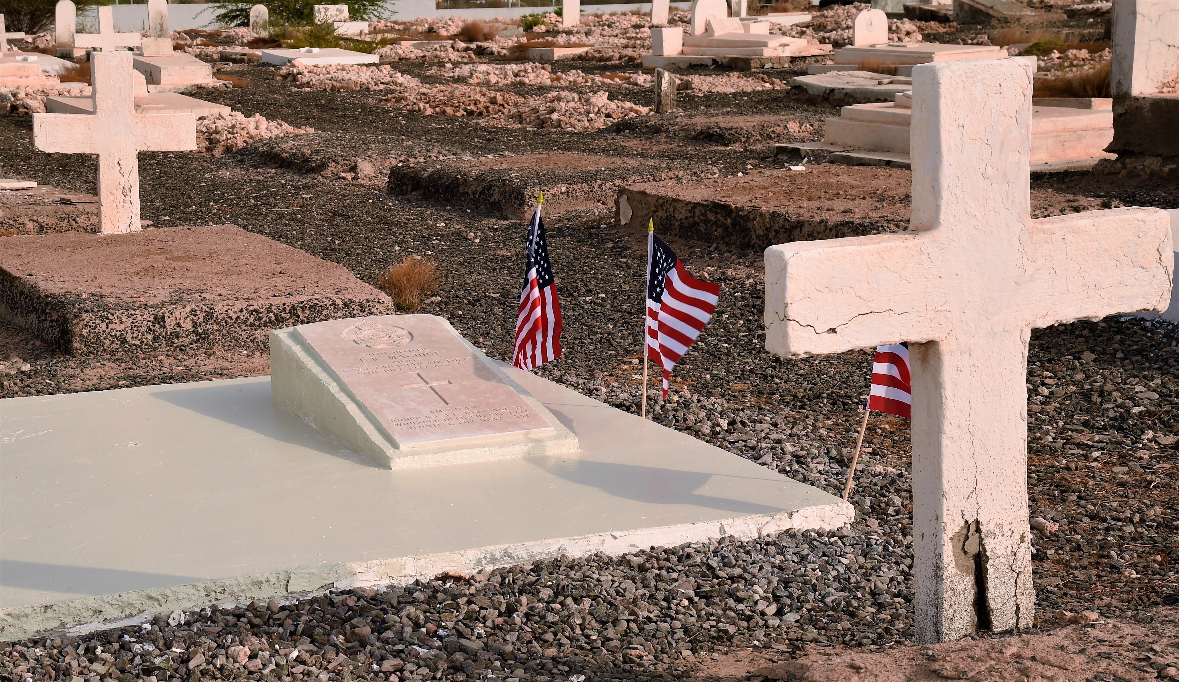 During the event, U.S. Navy Capt. David Rodriguez, CJTF-HOA chaplain, gave the invocation. Following the opening, U.S. Navy Capt. John Tully, U.S. Embassy to the Republic of Djibouti senior defense official and defense attaché, and Purcell both contributed remarks. The ceremony continued with an official laying of flowers at Maguire’s headstone, then the benediction and a solemn conclusion with the playing of taps.