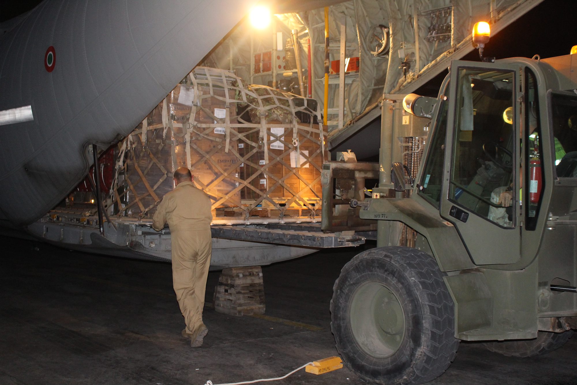 A proof-of-concept mission, CJTF-HOA worked with Italian military airlift to transport a pallet of water and packets of Meal, Ready-To-Eat (MRE) to Somalia. The mission served as a trial run to detect and mitigate possible administrative and operational challenges, said Narvaez.