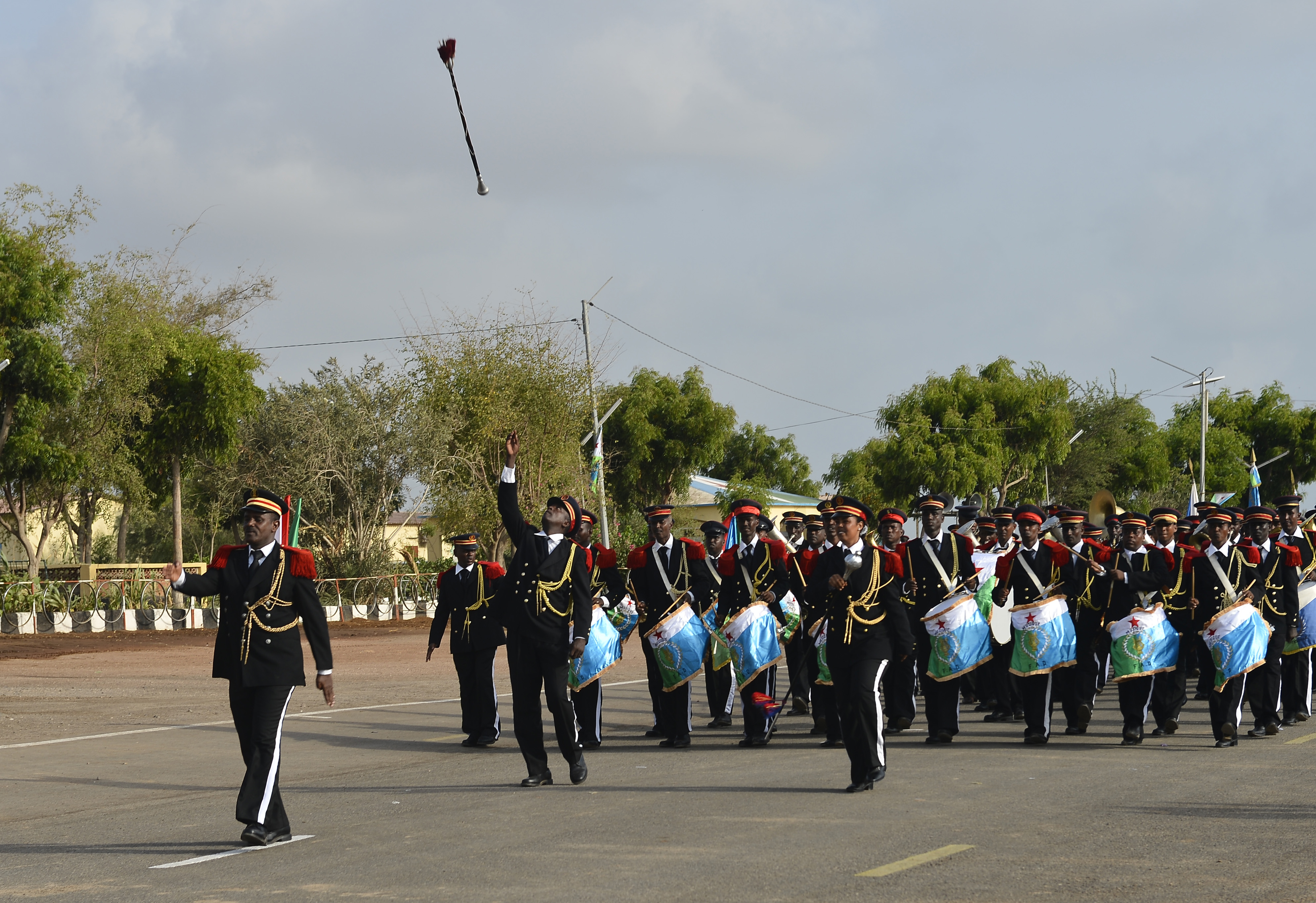 The Djiboutian Armed Forces (FAD) Marching Band performs during the Djiboutian Armed Forces’ (FAD) 38th anniversary celebration June 6, 2015 at Camp Cheik Osman, Djibouti. The FAD was created June, 6, 1977, 21 days before becoming an independent country. (U.S. Air Force photo by Senior Airman Nesha Humes)