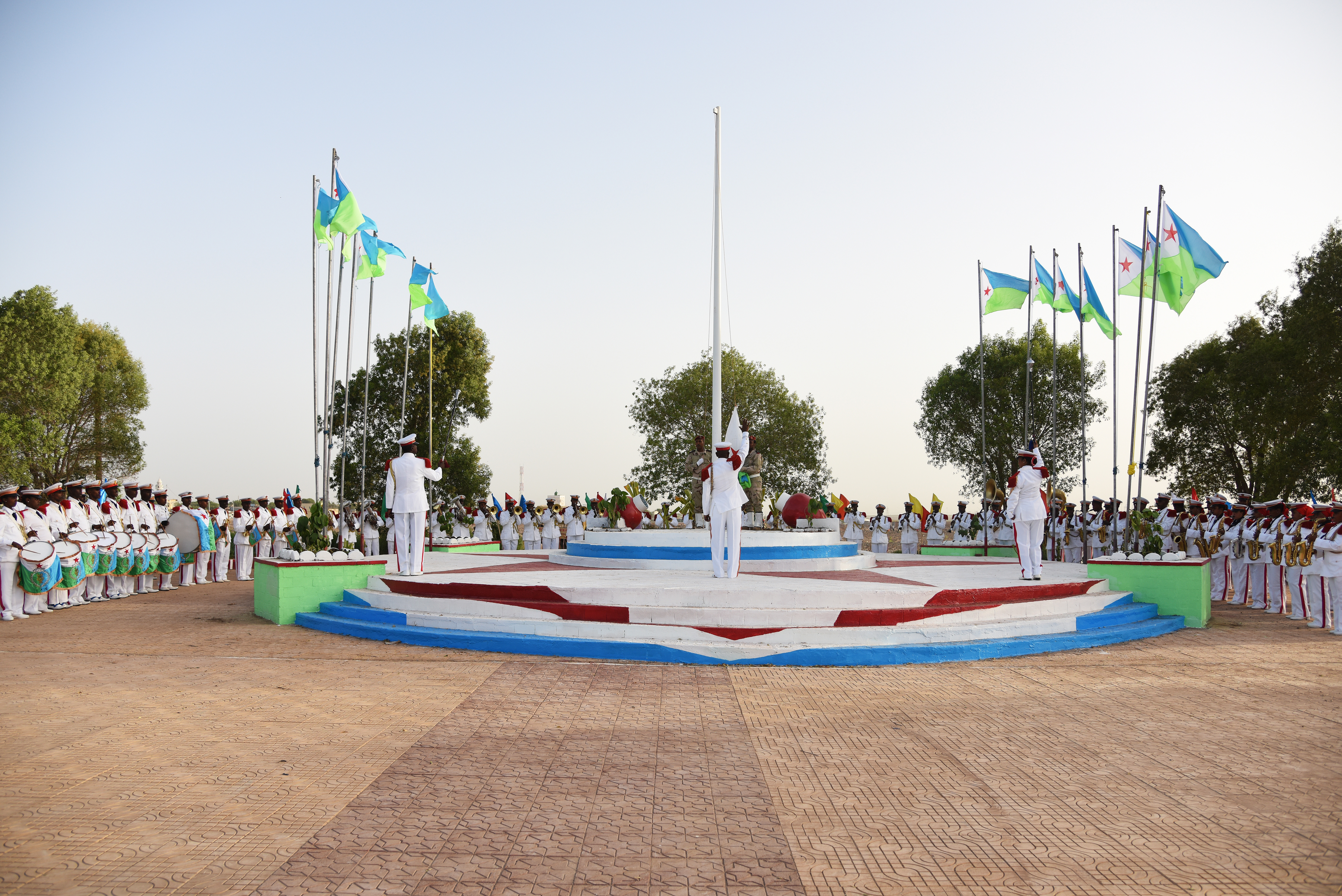 A Djiboutian marching band plays festive music during a Djibouti independence day celebration June 27, 2015, marking 38 years since it became a sovereign nation. The military parade included a marching band and troops showcasing its different military equipment. (U.S. Air Force photo by Staff Sgt. Maria Bowman)