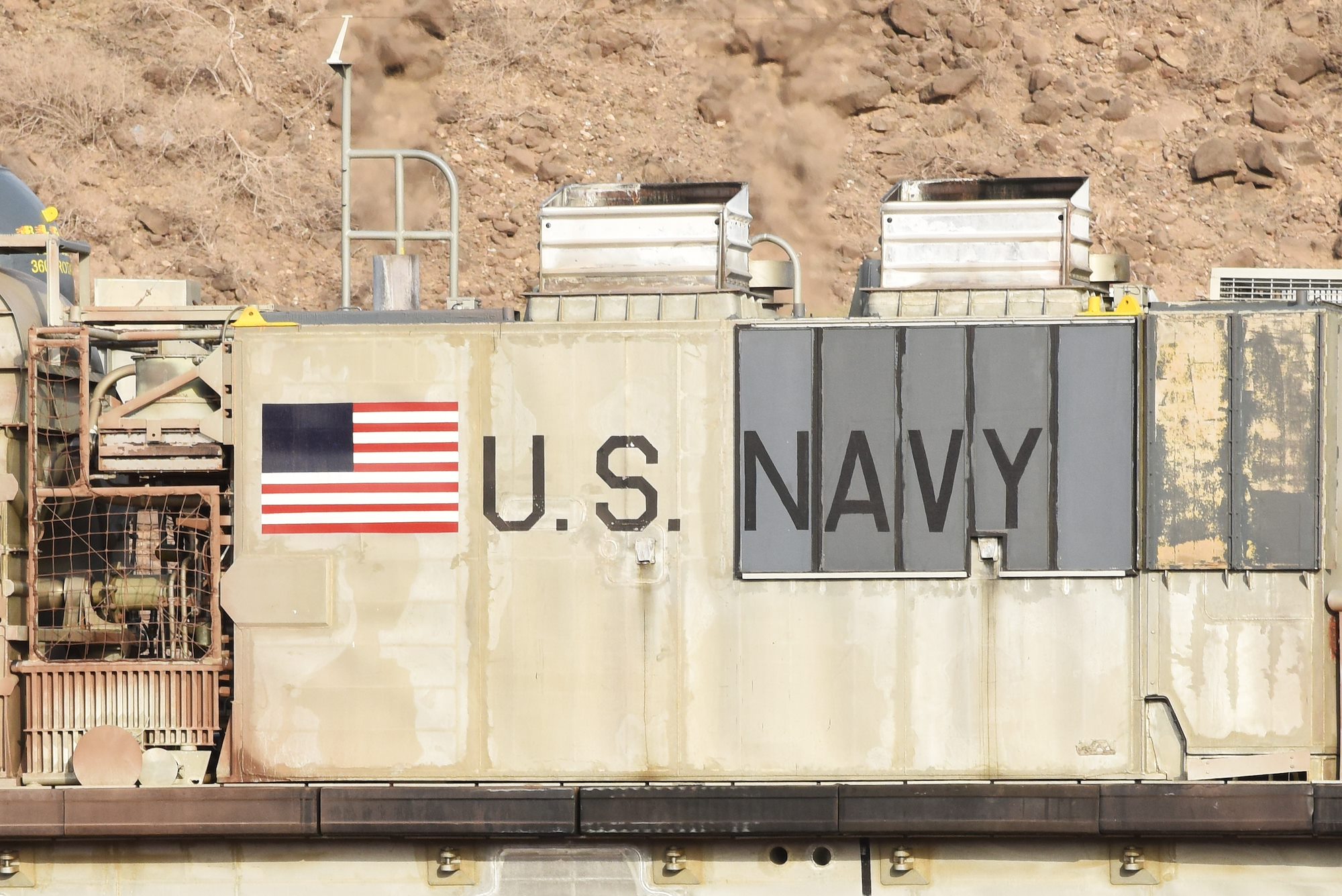 A U.S. Navy Landing Craft Air Cushion (LCAC) sits on a beach in Arta, Djibouti, July 20, 2015, while U.S. Marines from the 15th Marine Expeditionary Unit exited and their equipment were unloaded from the vessel. LCACs for USS Anchorage delivered U.S. Marines from the 15th Marine Expeditionary Unit and their equipment for sustainment training. (U.S. Air Force photo by Staff Sgt. Maria Bowman)