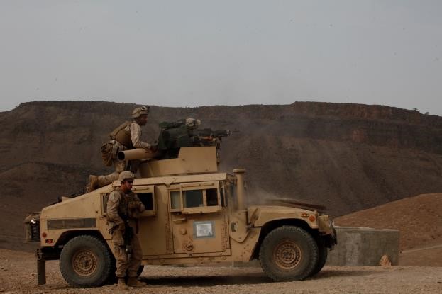 ARTA BEACH, Djibouti (July 29, 2015) U.S. Marines with Light Armored Reconnaissance Detachment, Battalion Landing Team 3rd Battalion, 1st Marine Regiment, 15th Marine Expeditionary Unit, engage targets in a fire-and-maneuver exercise during sustainment training. Elements of the 15th MEU are ashore in Djibouti for sustainment training to maintain and enhance the skills they developed during their pre-deployment training period. The 15th MEU is currently deployed in support of maritime security operations and theater security cooperation efforts in the U.S. 5th and 6th Fleet areas of operation. (U.S. Marine Corps photo by Sgt. Steve H. Lopez/Released)