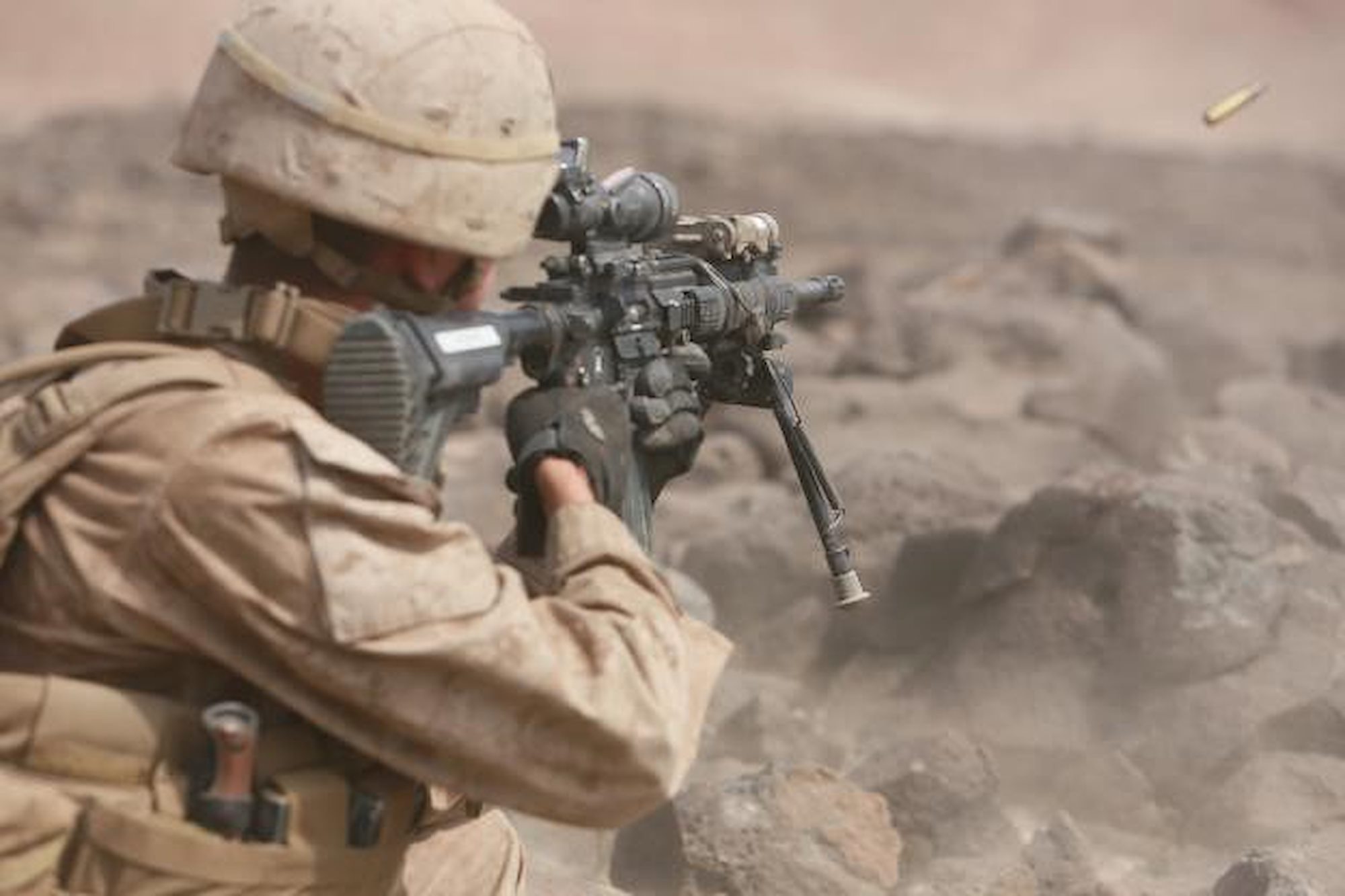 ARTA BEACH, Djibouti (July 22, 2015) A U.S. Marine with Battalion Landing Team 3rd Battalion, 1st Marine Regiment, 15th Marine Expeditionary Unit, fires an infantry automatic rifle during a squad-attack exercise. The Marines of BLT 3/1 executed a series of attack and maneuver drills consisting of, machine gun, squad and night attacks. Elements of the 15th Marine Expeditionary Unit are ashore in Djibouti for sustainment training to maintain and enhance the skills they developed during their pre-deployment training period. The 15th MEU is currently deployed in support of maritime security operations and theater security cooperation efforts in the U.S. 5th and 6th Fleet areas of operation. (U.S. Marine Corps photo by Sgt. Jamean Berry/Released)