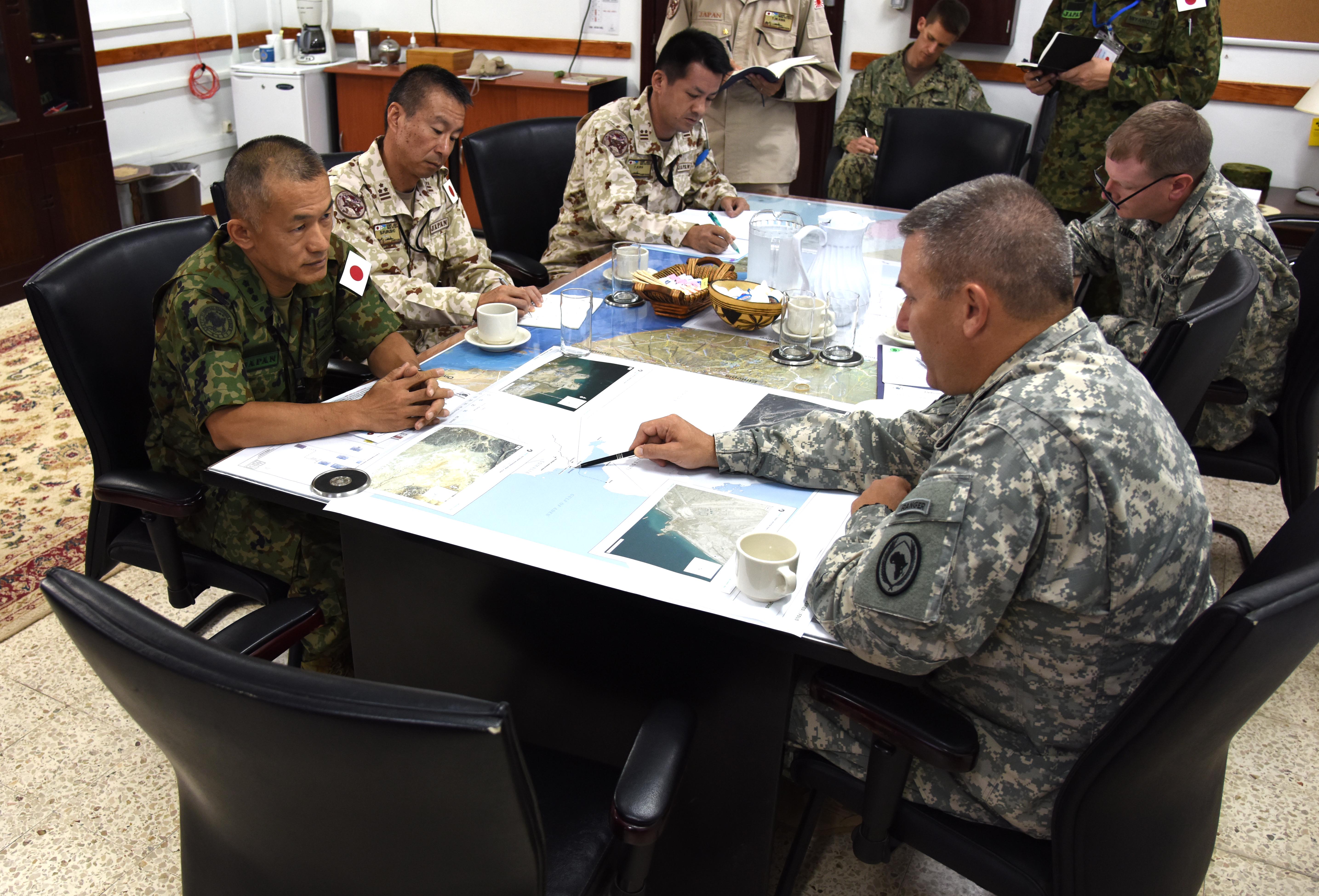 151009-N-DJ346-015 CAMP LEMONNIER, Djibouti (October 9, 2015) Major General Mark R. Stammer, Commanding General, Combined Joint Task Force – Horn of Africa, met with Lt. Gen. Hiromichi Kawamata, Commanding General, Japan Ground Self Defense Force, Central Readiness Force, to discuss future objectives and information sharing opportunities. General Stammer told General Kawamata that the Japanese Defense Forces are and remain valued friends and partners of CJTF-HOA. (U.S. Navy photo by Chief Mass Communication Specialist Donald W. Randall/Released)