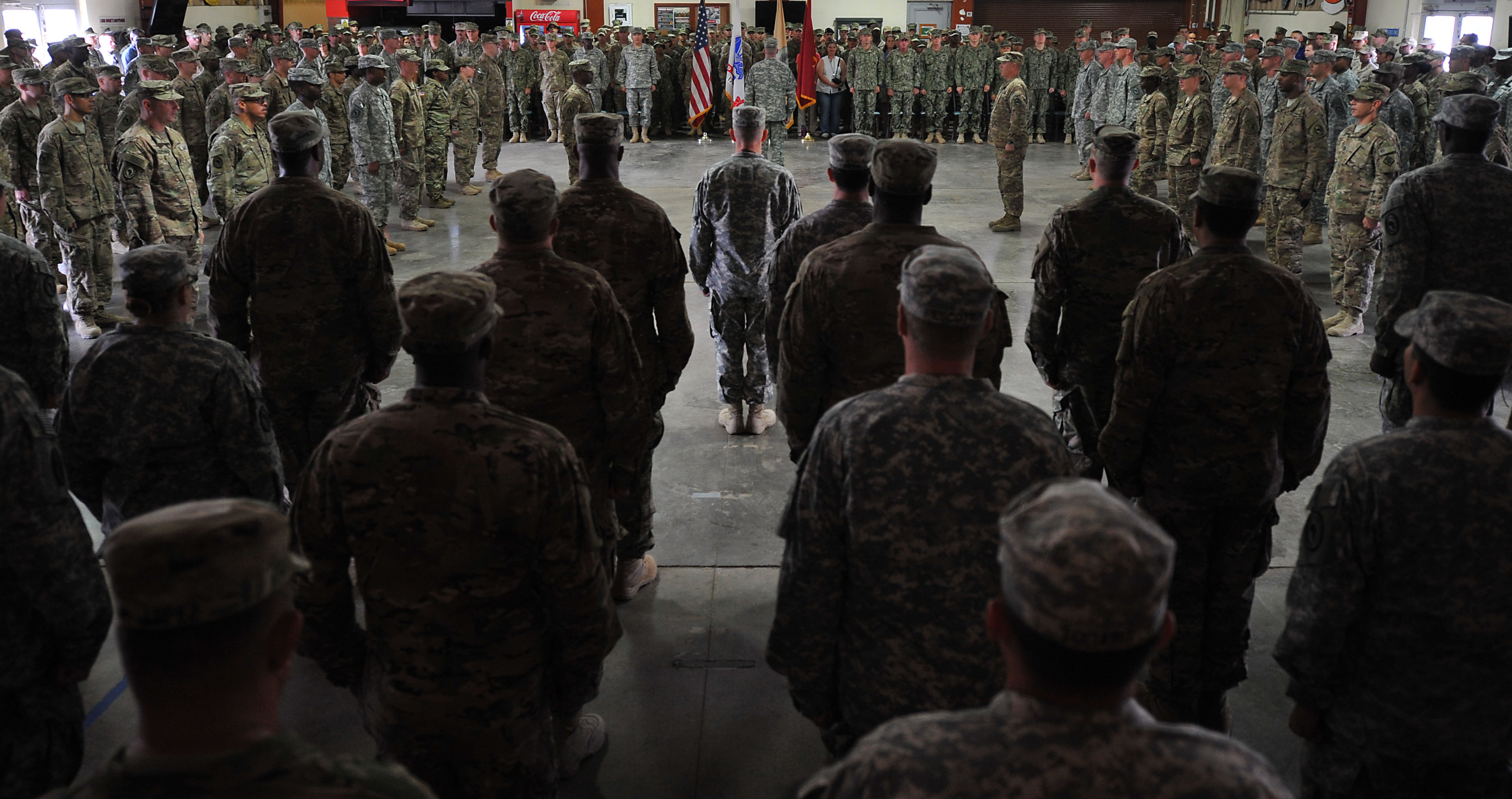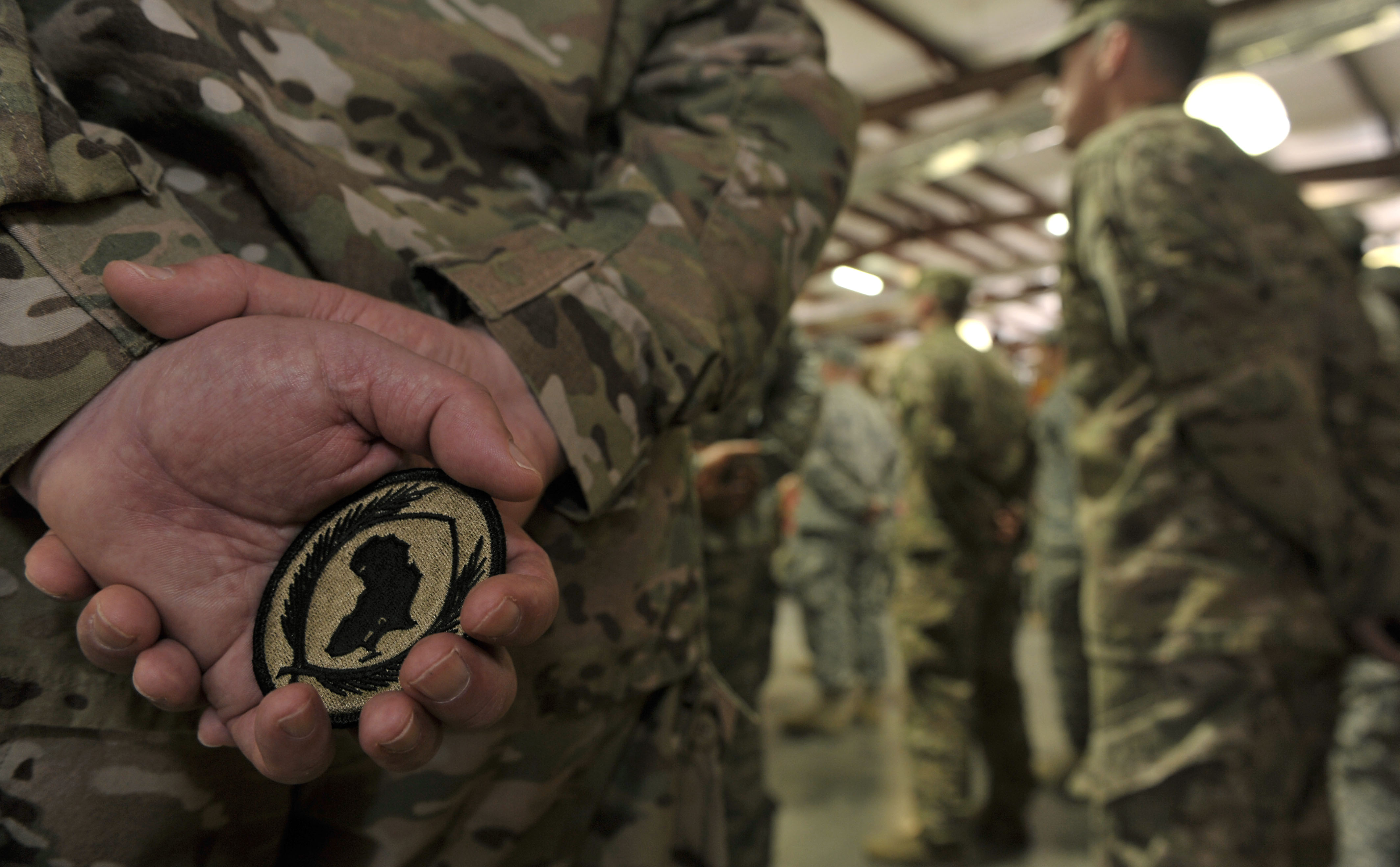 More than 150 soldiers assigned to Combined Joint Task Force-Horn of Africa gathered to don their newly earned combat patch during a ceremony at Camp Lemonnier, Djibouti, Nov. 28, 2015.