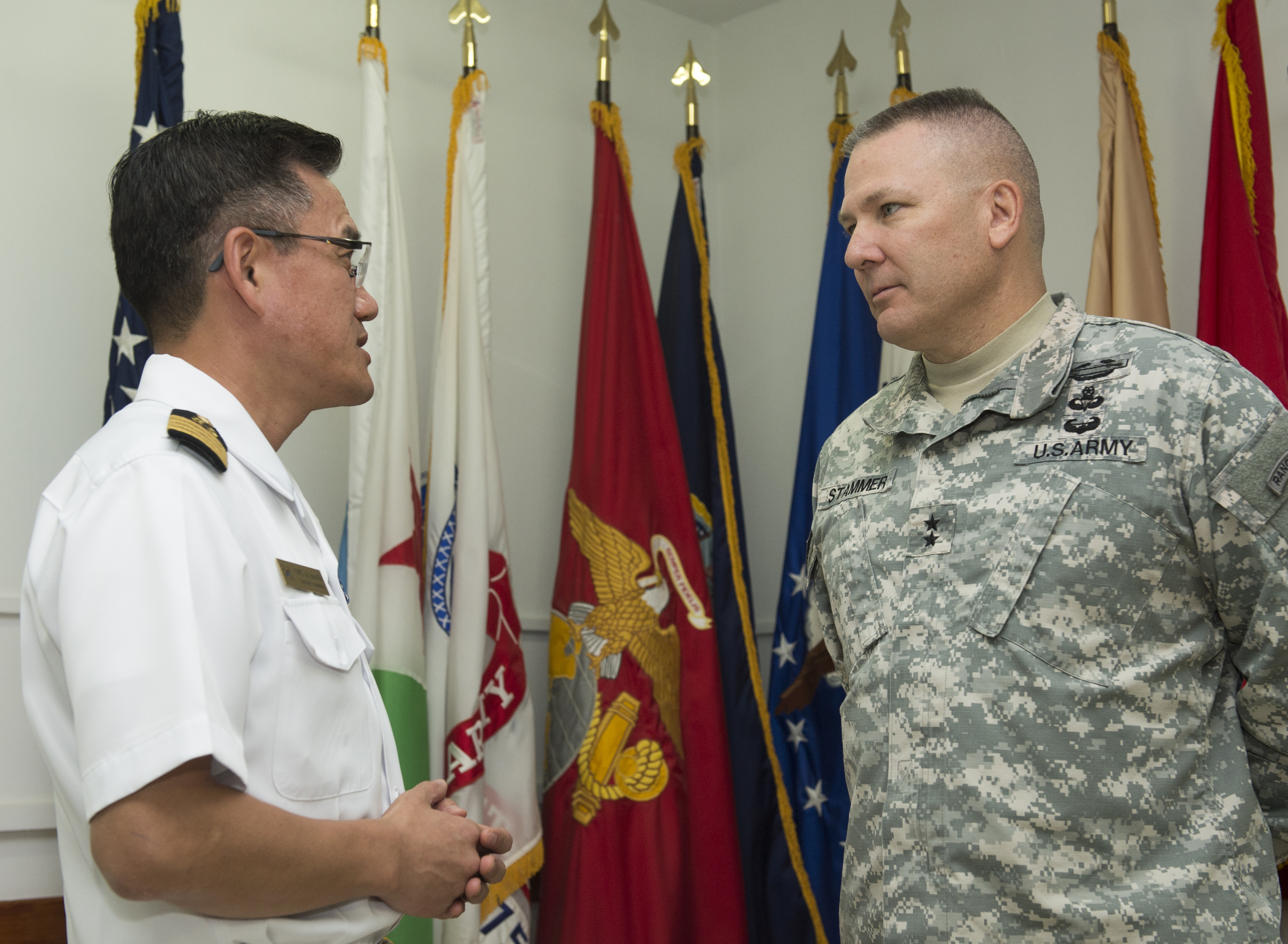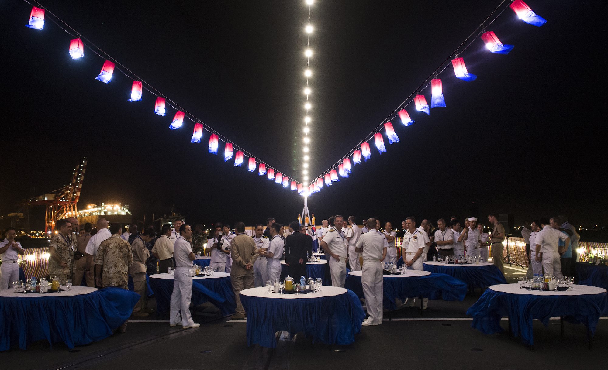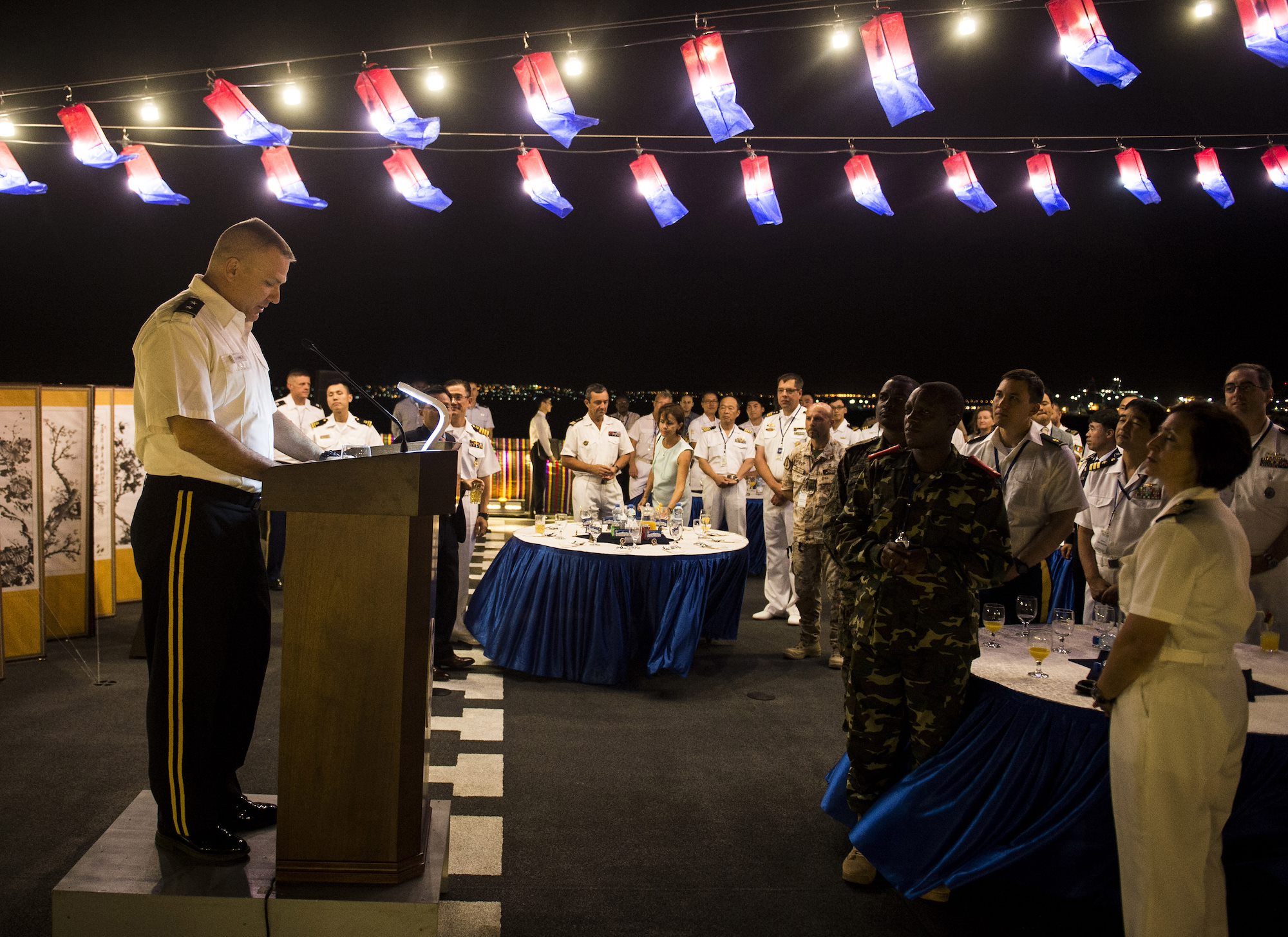 Navy Capt. Sangmin An, ROK Naval Escort Task Group 20th commander, invited members of Combined Joint Task Force-Horn of Africa to celebrate the 70th anniversary of the inauguration of the Republic of Korea’s Navy and the ongoing, mutually beneficial relationship between the United States and the Republic of Korea.