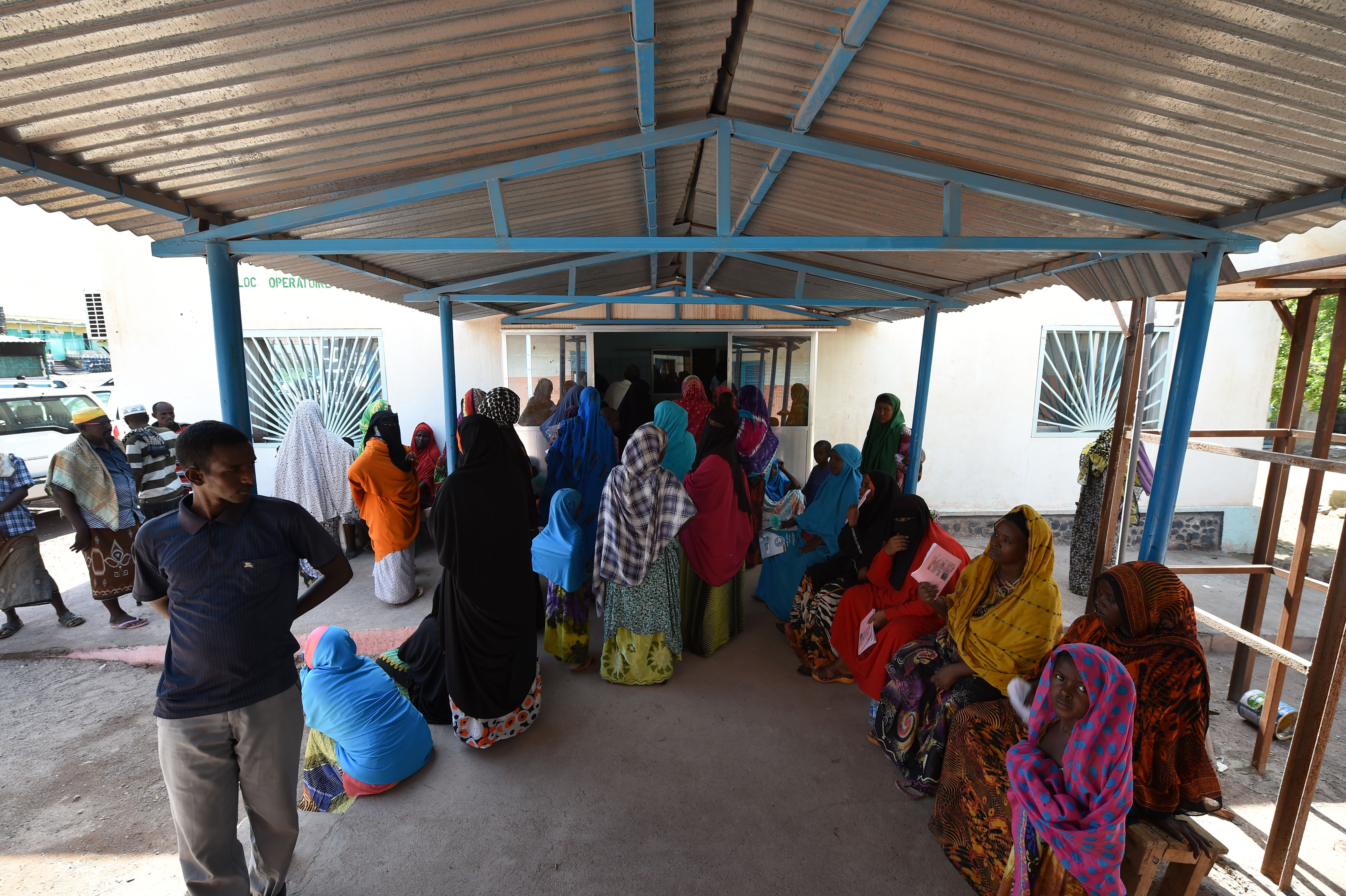 DIKHIL, DJIBOUTI – Villagers of Dikhil, Djibouti, wait to be seen by medical professionals from the 403rd Civil Affairs Battalion, Djibouti Ministry of Health and Cuban medical personnel during a medical civic action program, May 11, 2016. During the two-day program, MEDCAP offers medical care, medication and education to patients and allows the medical teams to work and exchange medical knowledge. (U.S. Air Force photo by Staff Sgt. Tiffany DeNault)