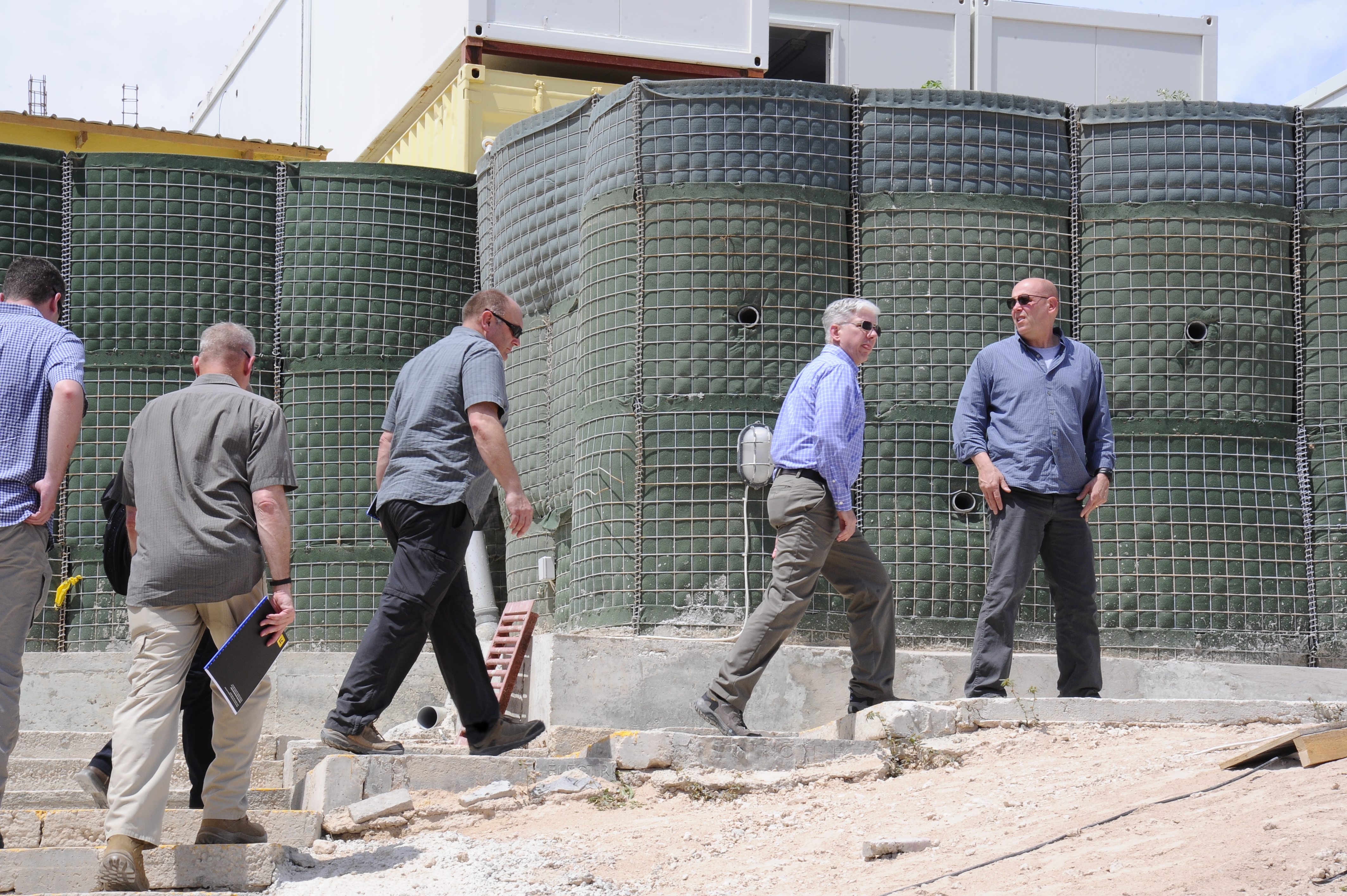 U.S. Air Force Maj. Gen. Barre Seguin, U.S. Africa Command director, strategy, plans and programs, and Maj. Gen. Eric Vollmecke, the Deputy Director for Strategic Initiatives, Joint Staff, attend a briefing to discuss future upgrades and renovations for facilities on the RA International construction site, Dec. 1, 2016, Mogadishu, Somalia. RA International is the contracting lead on the project which shared their blueprint of the work being accomplished. (U.S. Air Force photo by Tech. Sgt. Timothy Gallagher)