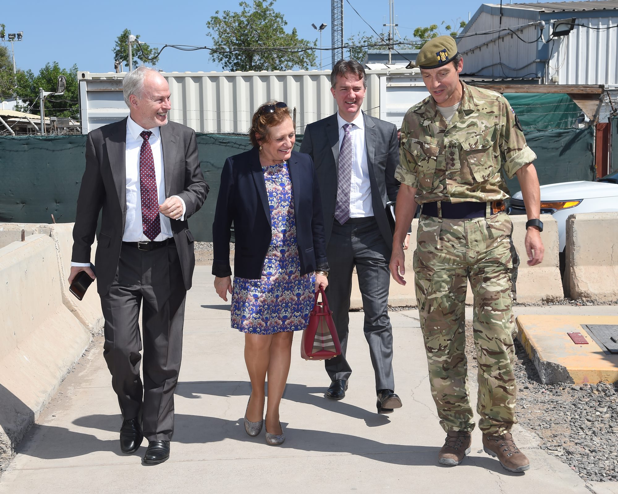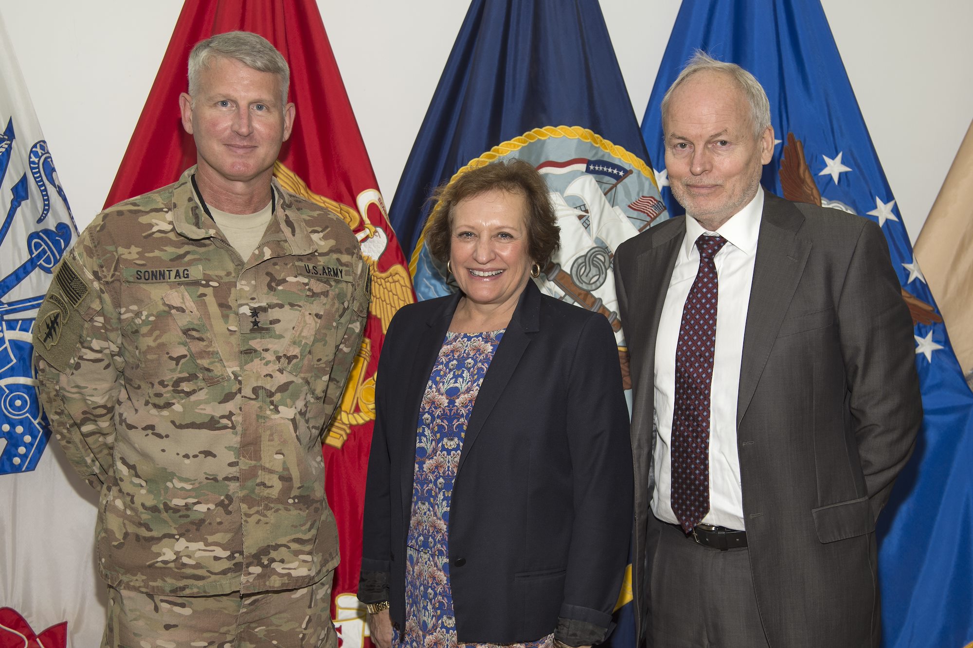 Her Majesty's Ambassador Susanna Moorehead, British ambassador to Ethiopia and Djibouti and Sir Nicholas Kay, U.K. special envoy to the Horn of Africa meet with Combined Joint Task Force-Horn of Africa Commanding General Maj. Gen. Kurt Sonntag at Camp Lemmonier, Djibouti, Jan. 23, 2017.