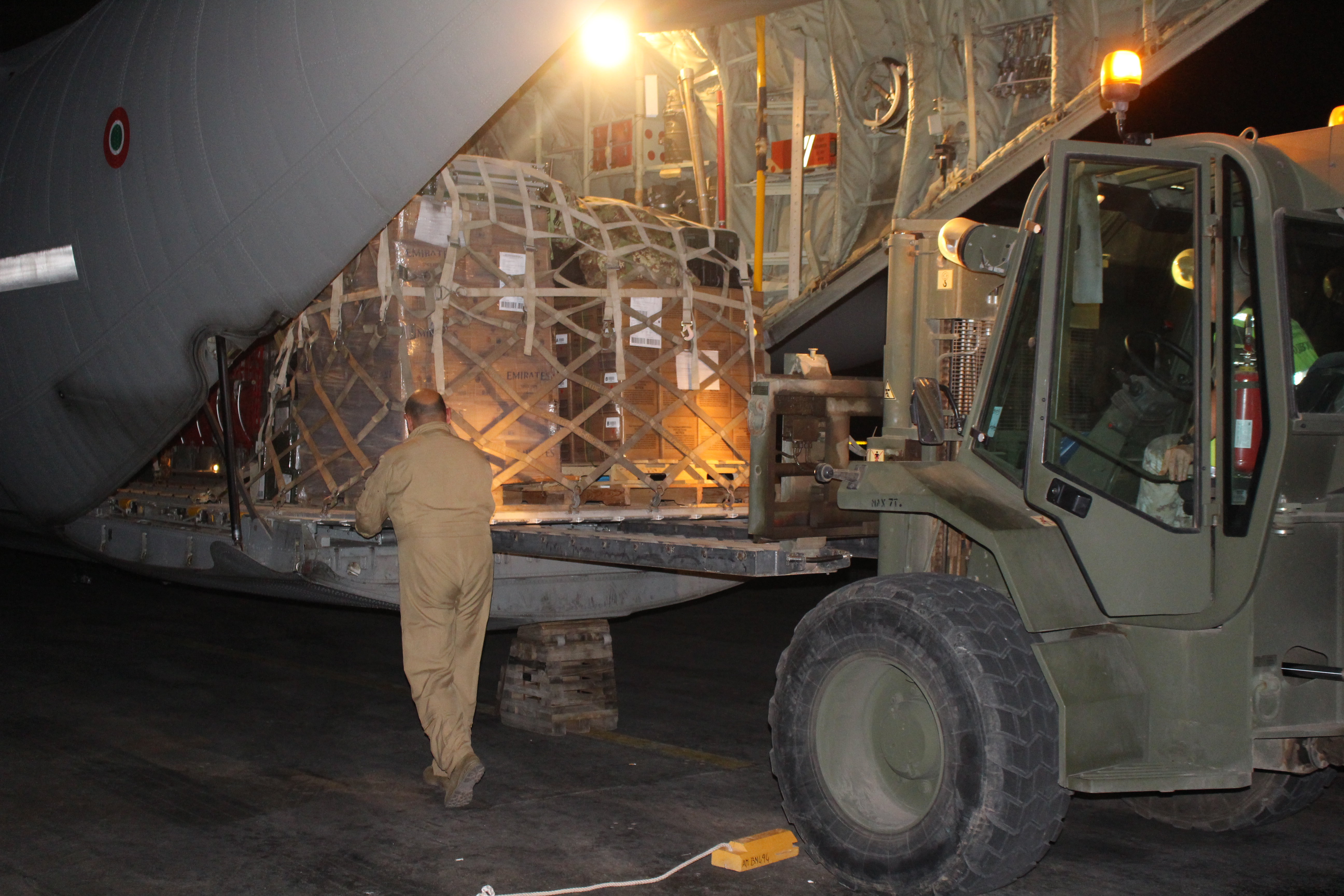 A proof-of-concept mission, CJTF-HOA worked with Italian military airlift to transport a pallet of water and packets of Meal, Ready-To-Eat (MRE) to Somalia. The mission served as a trial run to detect and mitigate possible administrative and operational challenges, said Narvaez.
