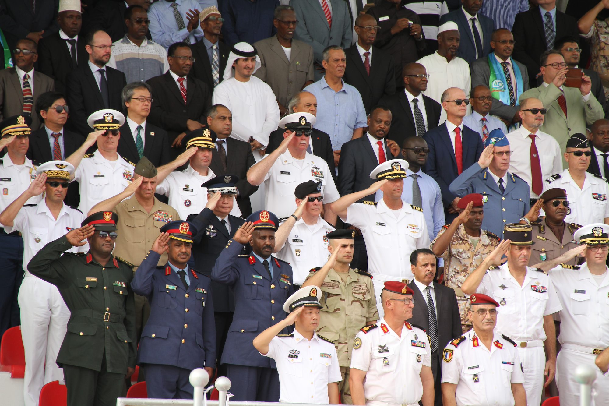 President of Djibouti, Ismail Omar Guelleh, hosted the event and invited international partners to unite with his countrymen in a show of solidarity. The Djiboutian Armed Forces were joined by military formations from Italy, Japan, France, China, and the United States.