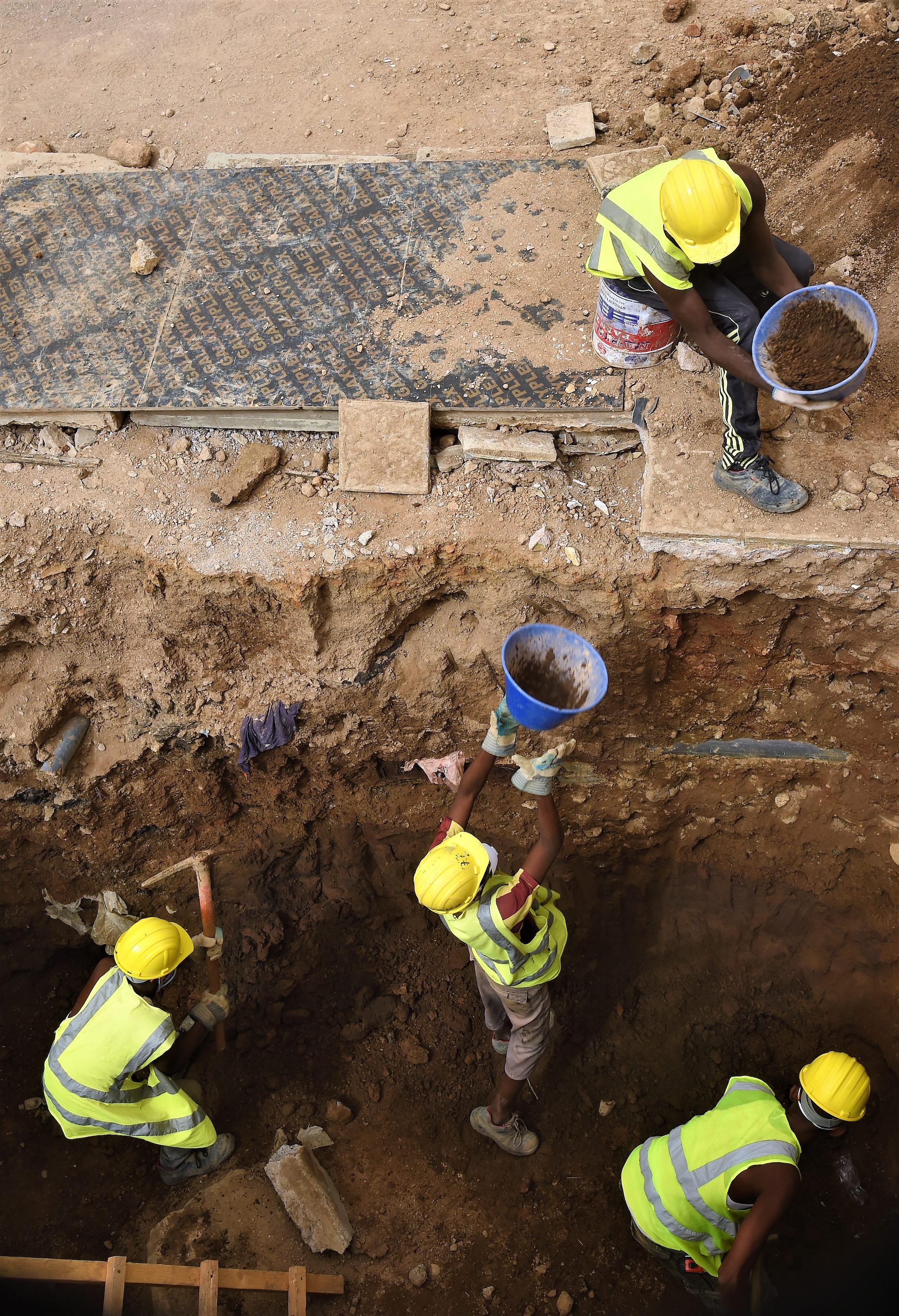 Loose, crimson soil softly shifted under U.S. Navy Lt. Sarah Chavez’s feet. The Combined Joint Task Force – Horn of Africa (CJTF-HOA) construction project manager keenly studied the crater outside Dar El Hanan Hospital in Djibouti City. As a construction team worked the dirt -- hastily shoveling and hoisting -- boisterous bilingual dialogue dissolved into the silty western winds.