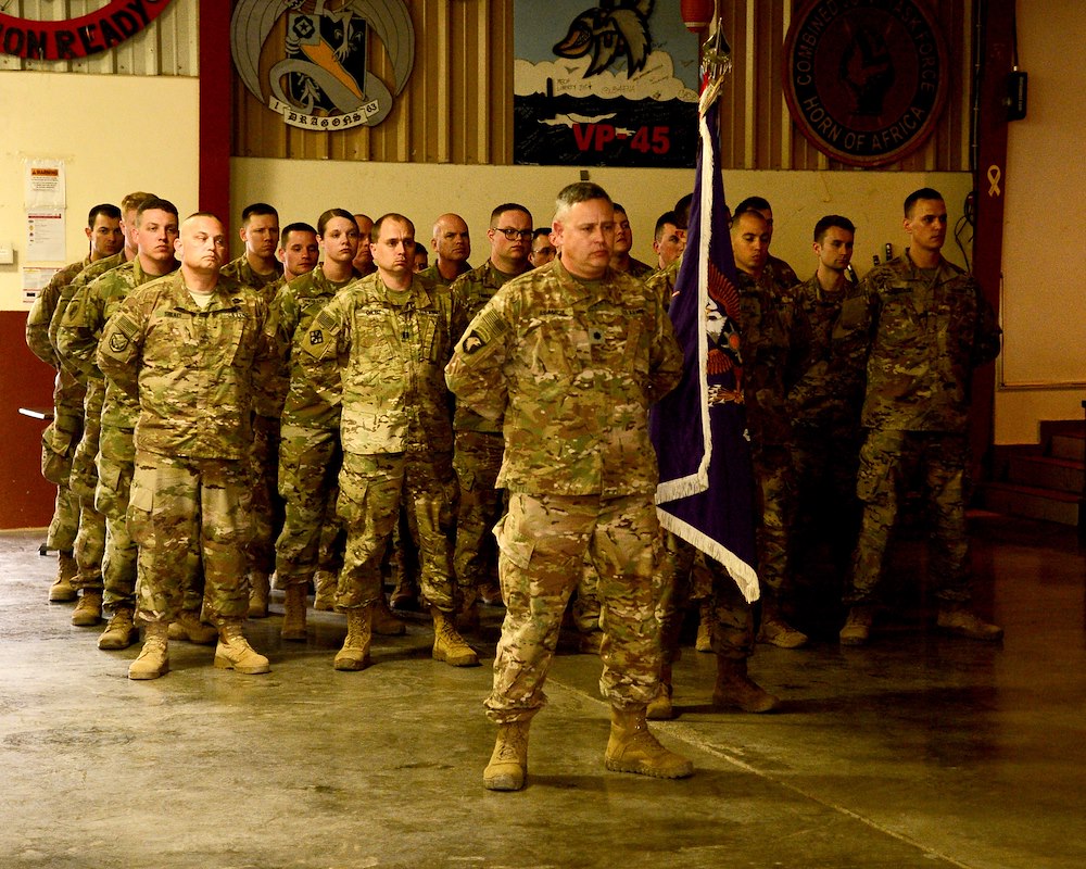 The U.S. Army 404th Civil Affairs Battalion, commanded by U.S. Army Lt. Col. Stefan Adamcik assumed authority from the 443rd Civil Affairs Battalion, at Camp Lemonnier, Djibouti, Feb. 3, 2018. The 404th will conduct military-to-military engagements to strengthen partner nation capacity and relationships with local military forces, civilian populations and civilian authorities. They also advise the Combined Joint Task Force Horn of Africa commanding general on the civil environment. (U.S. Navy Photo by Mass Communication Specialist 2nd Class Timothy M. Ahearn)