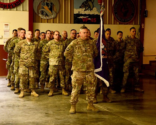 The U.S. Army 443rd Civil Affairs Battalion, commanded by U.S. Army Lt. Col. Keith McGee, prepares to transfer authority to the 404th Civil Affairs Battalion, at Camp Lemonnier, Djibouti, Feb. 3, 2018. The 404th will conduct military-to-military engagements to strengthen partner nation capacity and relationships with local military forces, civilian populations and civilian authorities. They also advise the Combined Joint Task Force Horn of Africa commanding general on the civil environment. (U.S. Navy Photo by Mass Communication Specialist 2nd Class Timothy M. Ahearn)