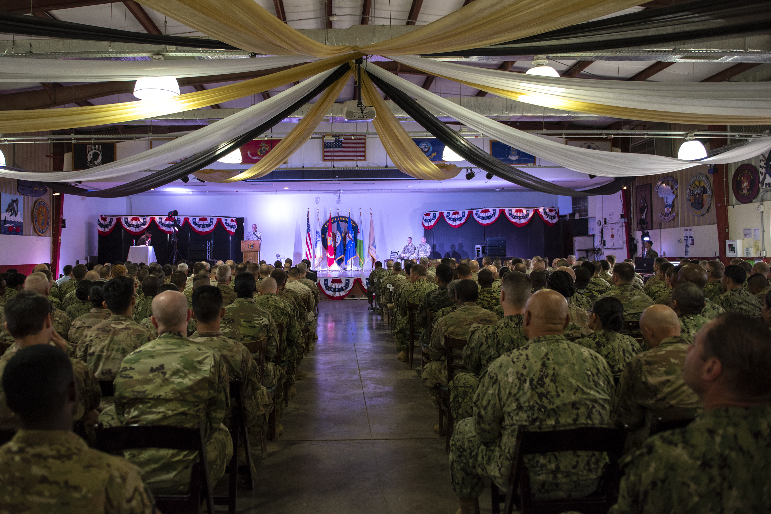 U.S. Army Brig. Gen. William Zana, outgoing commander of CJTF-HOA transferred responsibility to Brig. Gen. James Craig. U.S. Marine Corps Gen. Thomas Waldhauser, commander of United States Africa Command, presided over the ceremony.