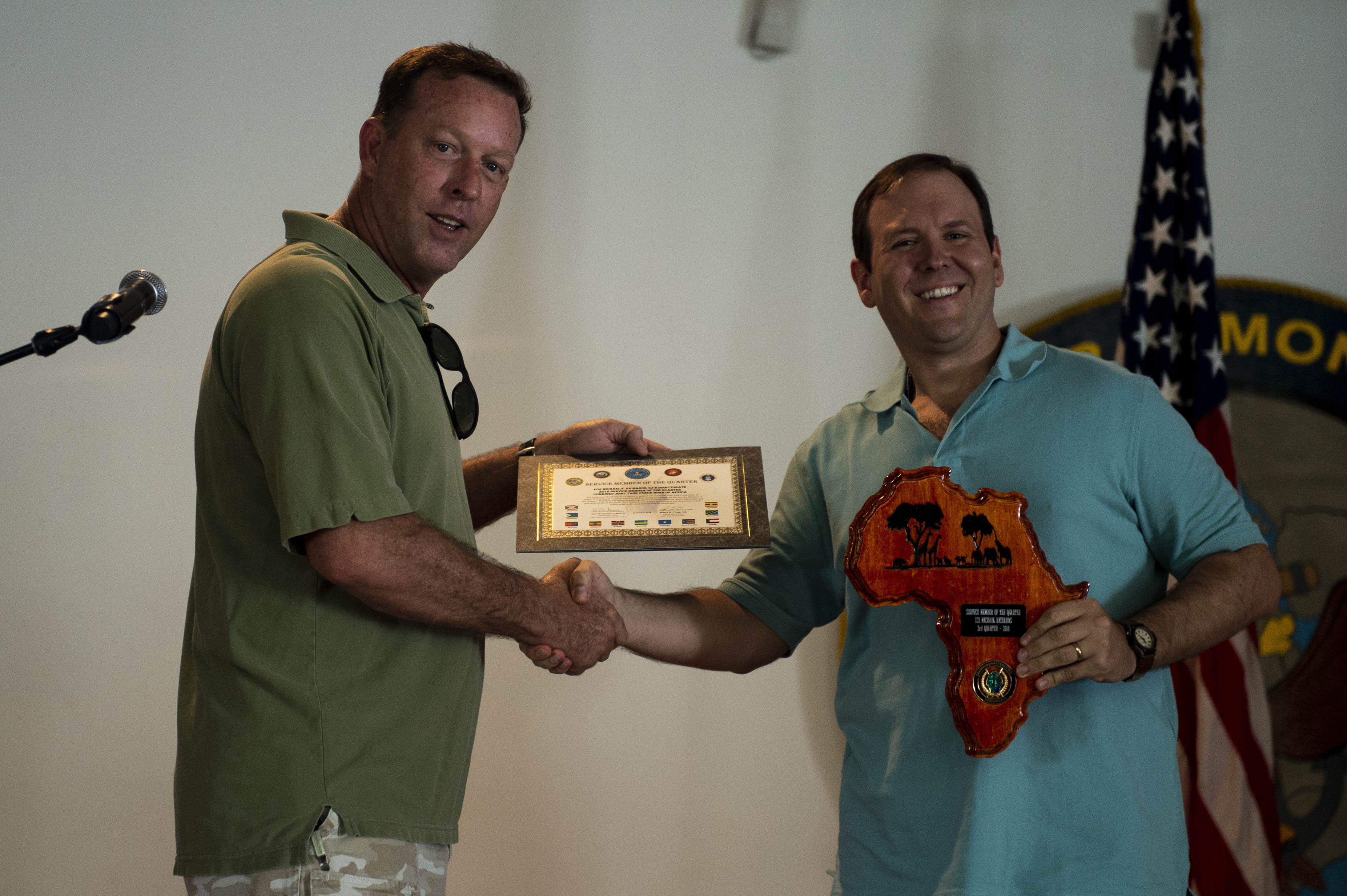 During the event, CJTF-HOA’s commanding general, Maj. Gen. James D. Craig, and CJTF-HOA’s Senior Enlisted Leader, Command Master Chief Karl Parsons, presented quarterly awards, thanked galley employees and praised members of the CJTF-HOA staff.