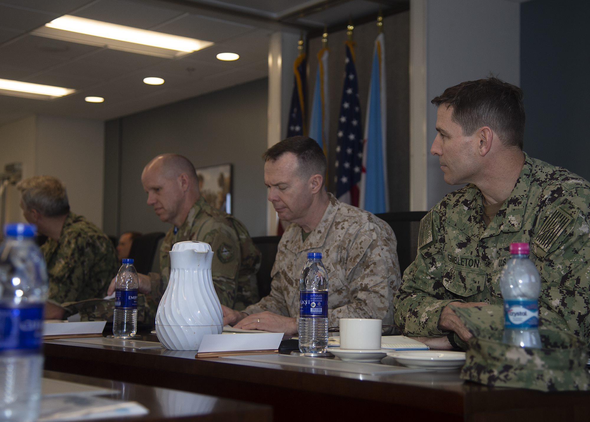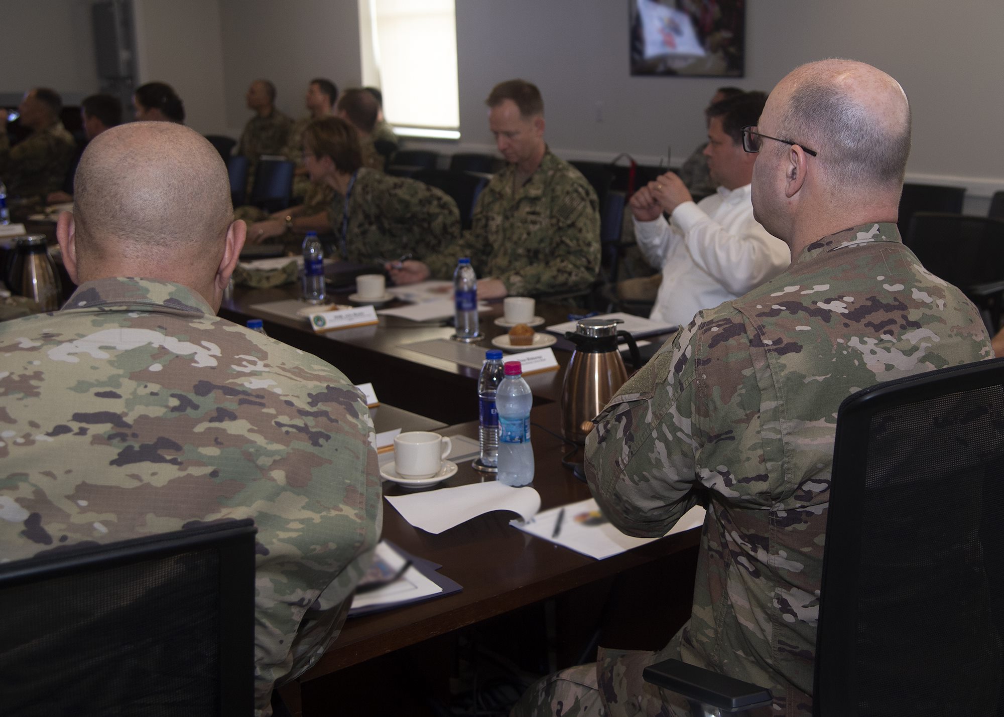 U.S. military senior officers participate in the Capstone Military Leadership Program classroom session at Camp Lemonnier, Djibouti, Feb. 13, 2019. Capstone is a joint-service professional military education course for newly-promoted brigadier generals and rear admirals serving in the U.S. military. (U.S. Navy photo by Mass Communication Specialist 1st Class Nick Scott)