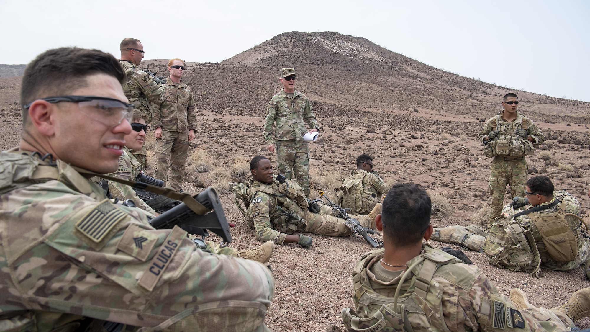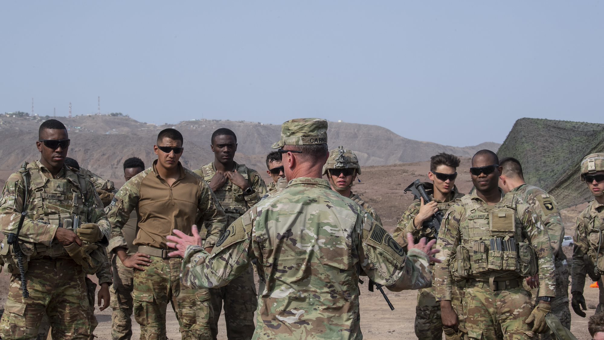 ARTA RANGE, Djibouti -- U.S. Army Command Sgt. Maj. Shawn Carns, command senior enlisted leader (CSEL), Combined Joint Task Force-Horn of Africa (CJTF-HOA), visited U.S. Army Soldiers assigned to the East Africa Response Force (EARF), deployed in support of CJTF-HOA, as they conducted a live-fire exercise at Arta Range, Djibouti, Aug. 26.