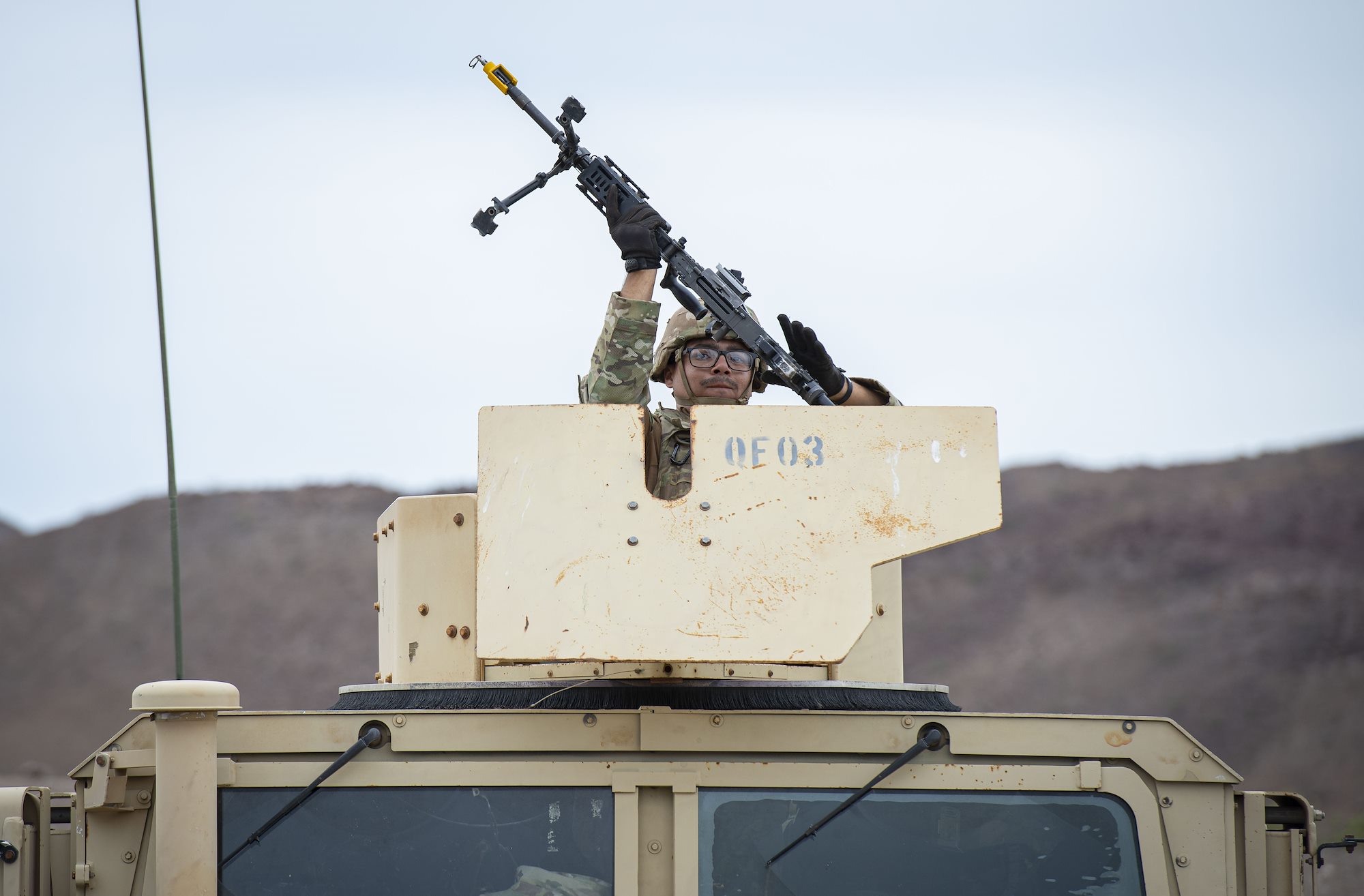 U.S. Army Spc. Gudiel Ventura, rifleman with Bravo Company 2-113th Infantry assigned to Combined Joint Task Force-Horn of Africa (CJTF-HOA), prepares for the bilateral field training exercise (FTX) in Djibouti, Africa, Oct. 2, 2019. The FTX was part of a Japanese-led noncombatant evacuation operation (NEO) exercise, which also included African coalition partners. (U.S. Air Force photo by Senior Airman Gabrielle Spalding)