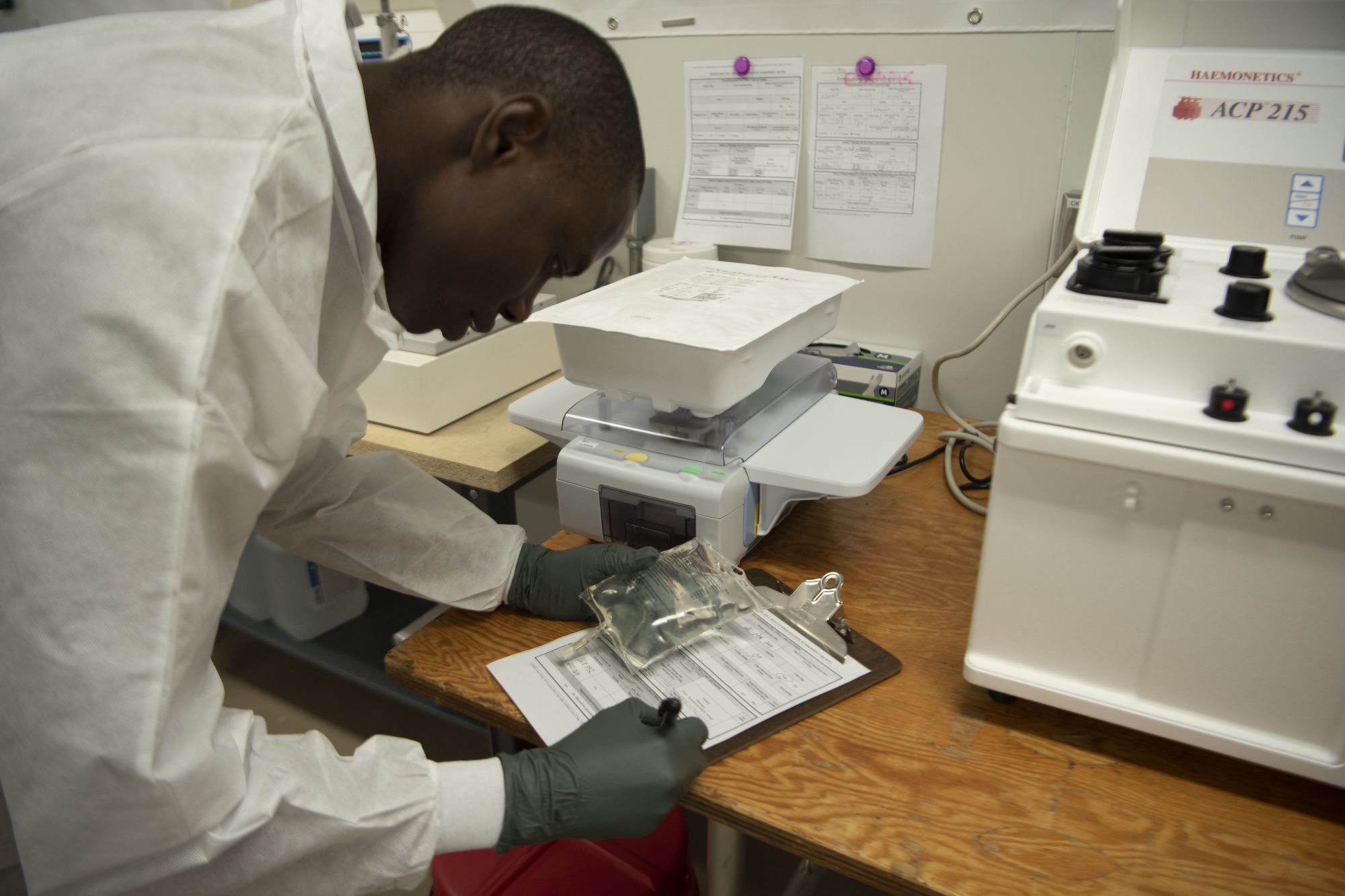 “The ACP 215 takes red blood cells through a process called deglycerolization. When blood is initially frozen, a substance called glycerol is added to keep the red blood cells alive while they’re frozen,” said U.S. Army Master Sgt. Malika Sharif, Surgeon Cell senior enlisted leader, CJTF-HOA. “Glycerol is a non-toxic liquid, but if it’s not removed during the unfreezing process, it can cause the blood cells to rupture, rendering the supply unsuitable for transfusion. The ACP 215 takes red blood cells through the deglycerolization process to prevent that.”