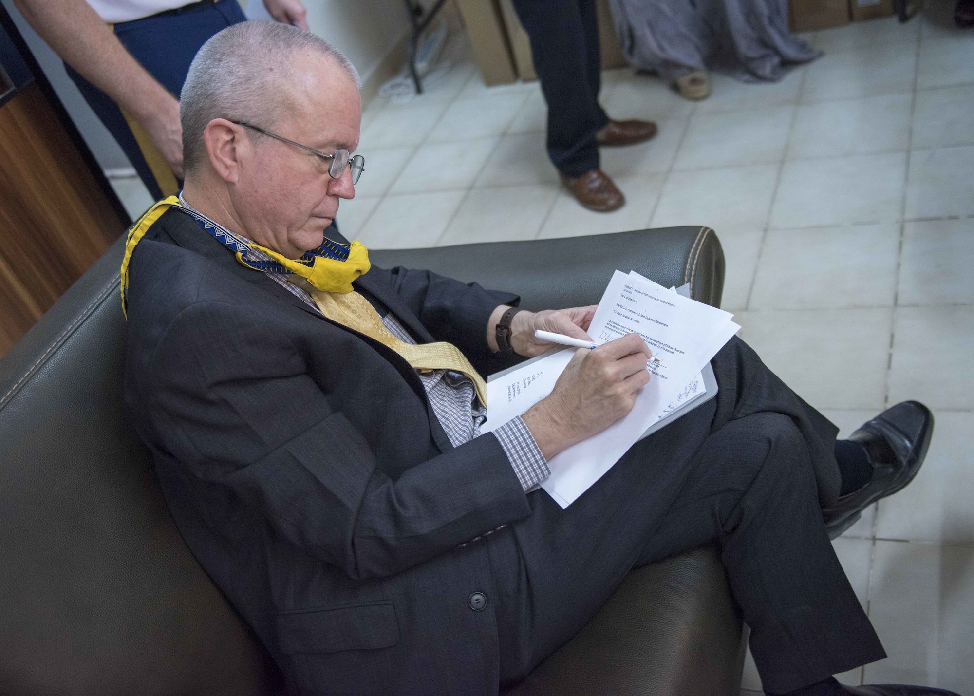 Larry E. André, U.S. Ambassador to Djibouti, signs a document transferring ownership of a polymerase chain reaction (PCR) machine, which is used to test for pathogens like the COVID-19 virus, from the U.S. government to the Djiboutian Ministry of Health during a ceremony held at the ministry’s Central Purchasing of Materials and Essential Medicines facility in Djibouti City, Djibouti, Aug. 17, 2020. Combined Joint Task Force-Horn of Africa (CJTF-HOA) purchased the equipment on behalf of the United States using Overseas Humanitarian, Disaster Assistance, and Civic Aid (OHDACA) funds for approximately $76,000, following a request for aid from the Djiboutian government earlier this year. In total, CJTF-HOA has facilitated nearly $300,000 worth of U.S. aid to the government of Djibouti, including hygiene kits, 95 hospital beds, PPE and hand sanitizer among other supplies and equipment. (U.S. Air Force photo by Senior Airman Dylan Murakami)