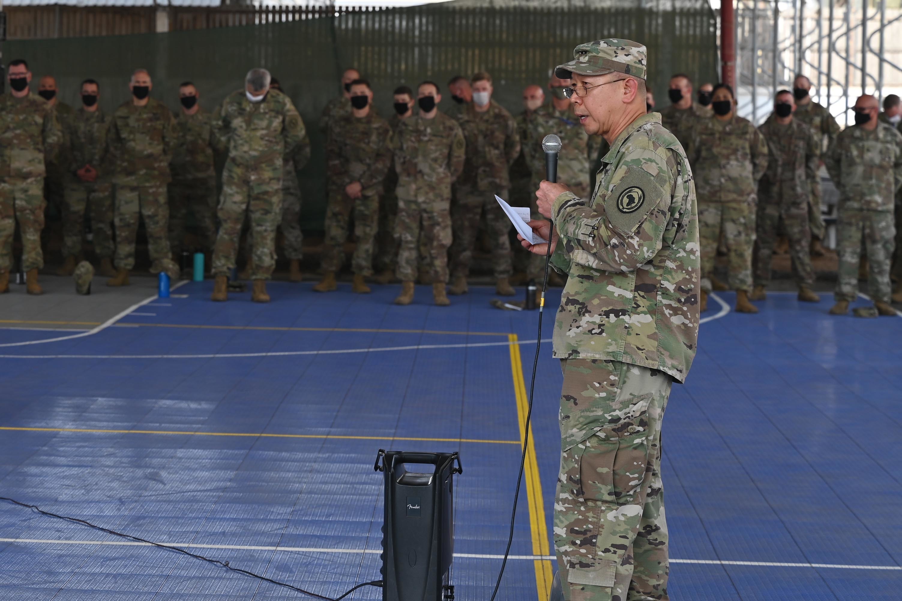 During Maj. Gen. Lapthe C. Flora’s, commanding general, CJTF-HOA, first time addressing the new HOA staff he stated how following CDC guidelines of proper mask wear and social distancing were part of his top priorities to ensure getting the mission done while combating the spread of COVID-19.