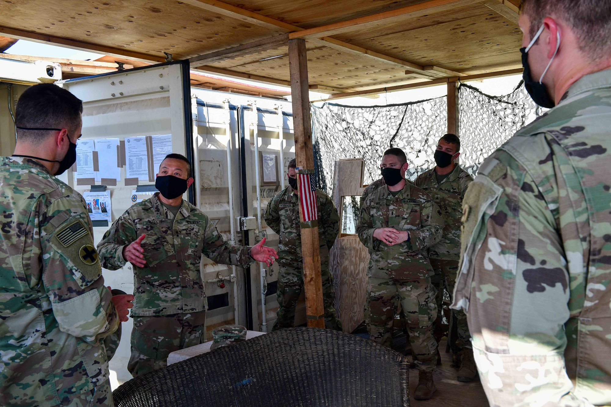 U.S. Marine Corps Gen. Michael Langley, commander of U.S. Africa Command, presided over the Combined Joint Task Force - Horn of Africa change of command from U.S. Army Maj. Gen. Brian Cashman, outgoing CJTF-HOA commanding general, to U.S. Army Brig. Gen. Matthew Brown, incoming CJTF-HOA commanding general, at Camp Lemonnier, Djibouti, June 19, 2025.