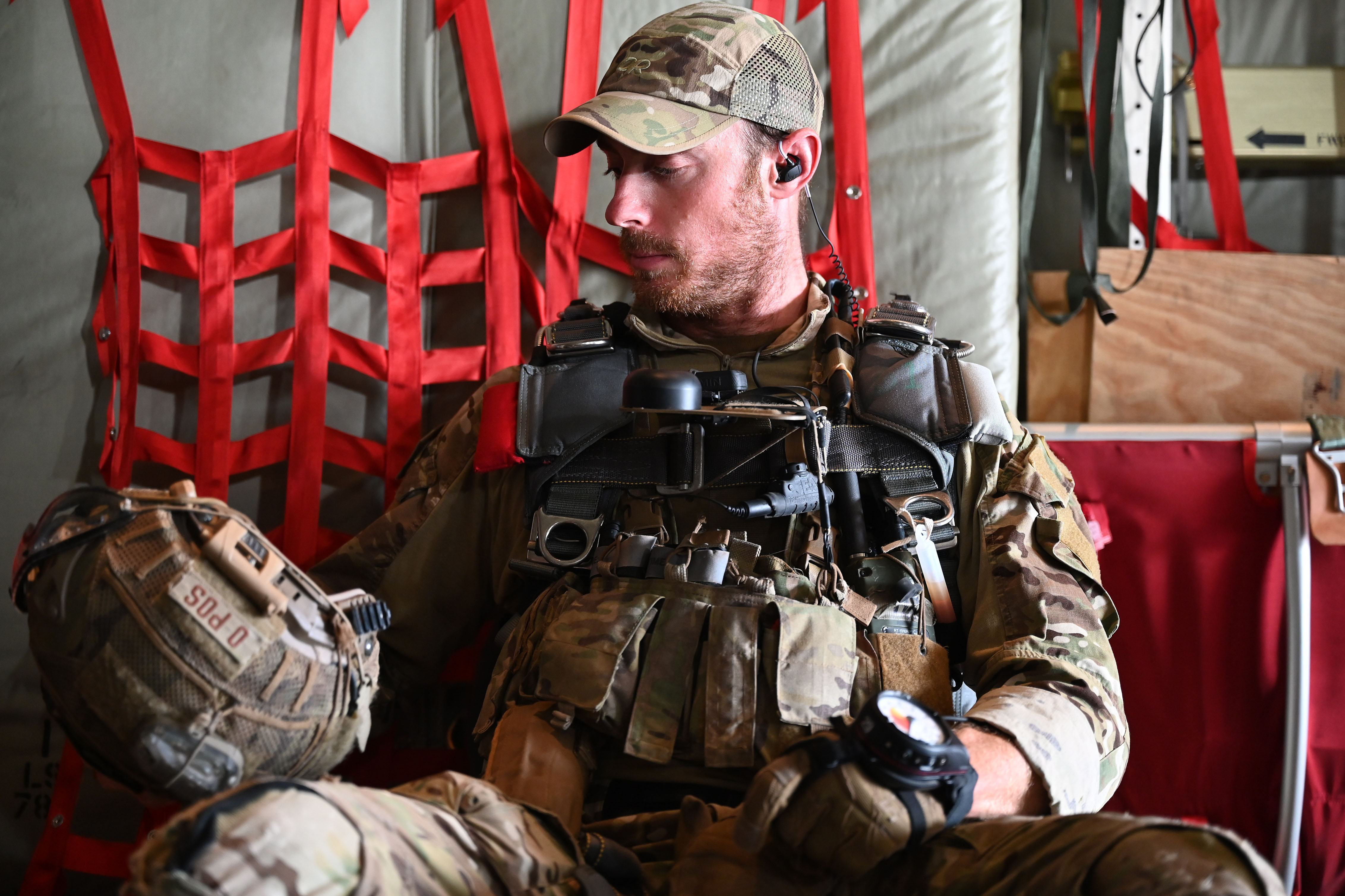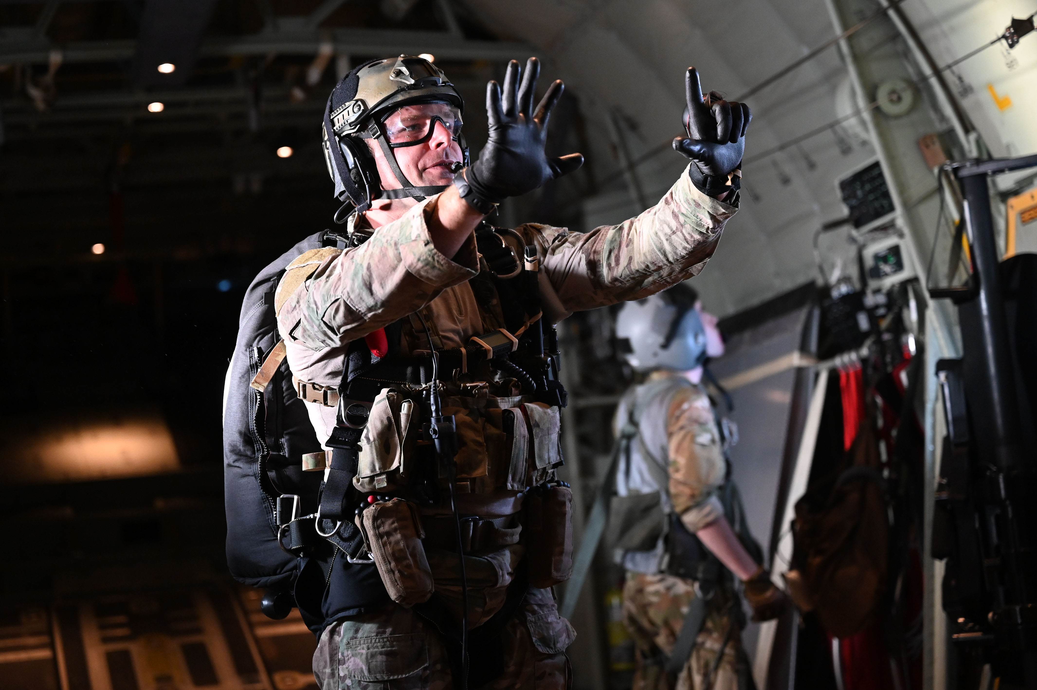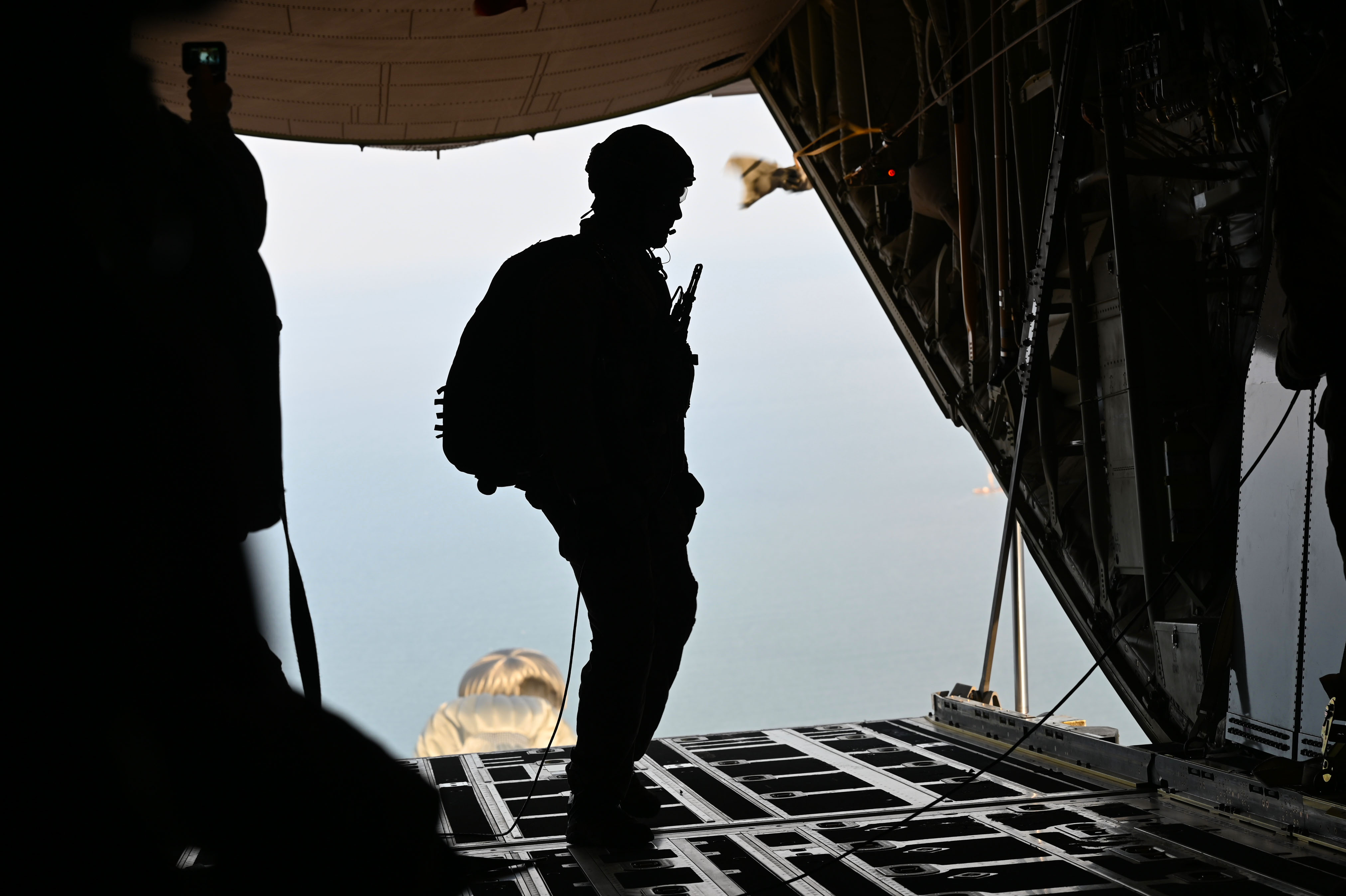 A U.S. Air Force Pararescuemen, from th 82nd Expeditionary Rescue Squadron (ERQS), and Airmen from the 75th Expeditionary Airlift Squadron conducted jump training in East Africa, Dec. 24, 2020.