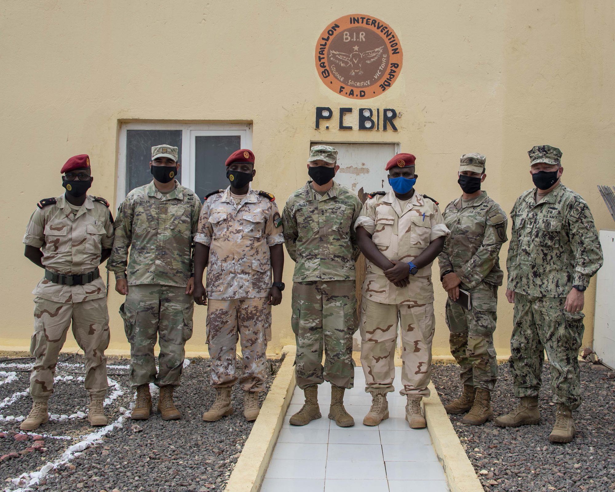 U.S. Army Maj. Gen. Lapthe Flora, commanding general, Combined Joint Task Force - Horn of Africa (CJTF-HOA), and U.S. Navy Command Master Chief Petty Officer Alex Hebert, senior enlisted leader, CJTF-HOA, visited Djiboutian soldiers with the Bataillon d'intervention rapide (BIR). During his visit, Flora also observed the on-going projects and training the 760th Engineer Vertical Construction Company (EVCC) and Security Forces Assistance Brigade (SFAB) are working.