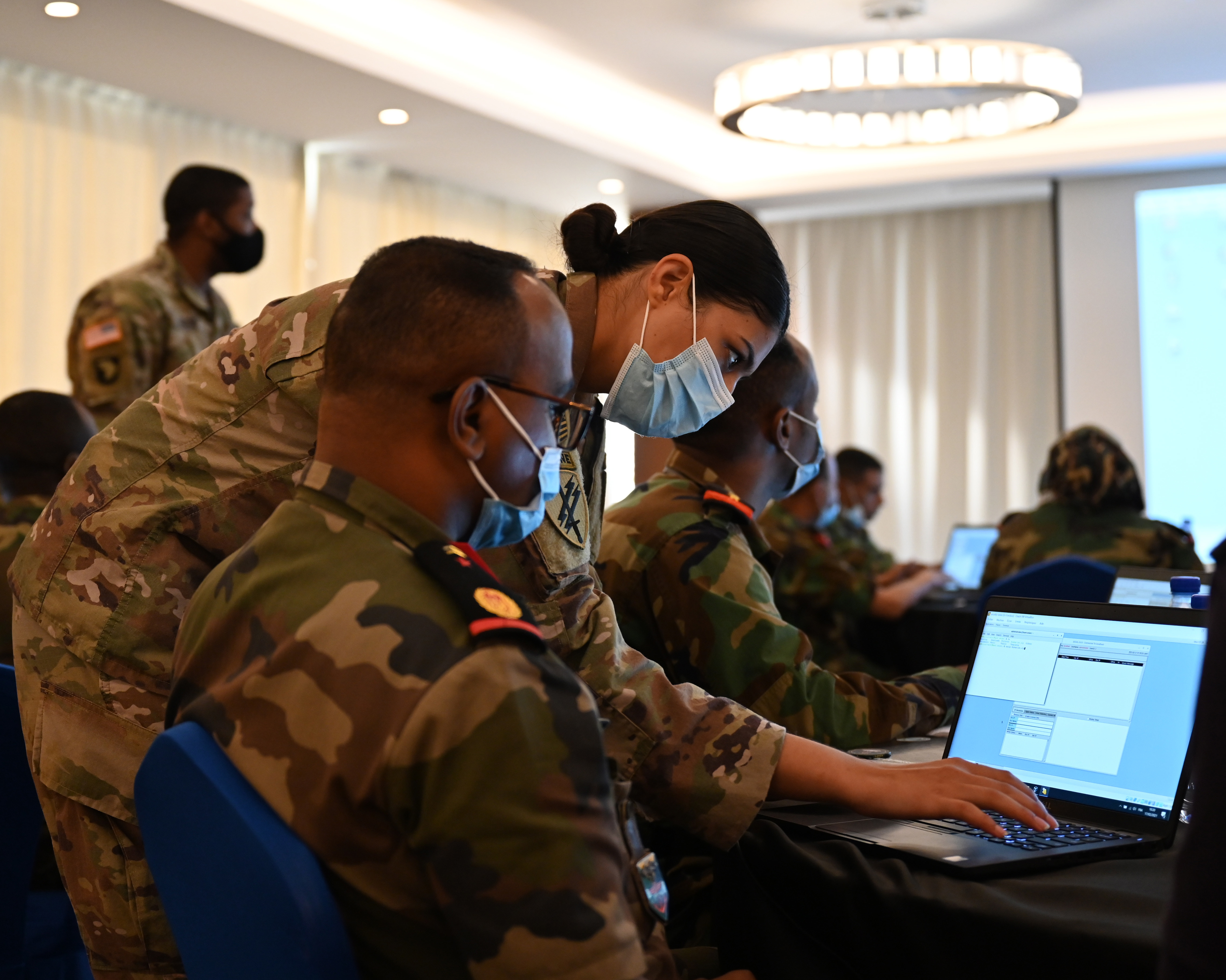 United States soldiers assigned to CJTF- HOA, French Soldiers assigned to the French Forces Djibouti (FFDJ), and Djiboutian soldiers assigned to the Armed Forces of Djibouti (FAD), participated in a four-day cyber defense and interoperability engagement to build the cyber defense capabilities of the three partner nations at the Sheraton Hotel, Djibouti, Feb. 14-17, 2021.