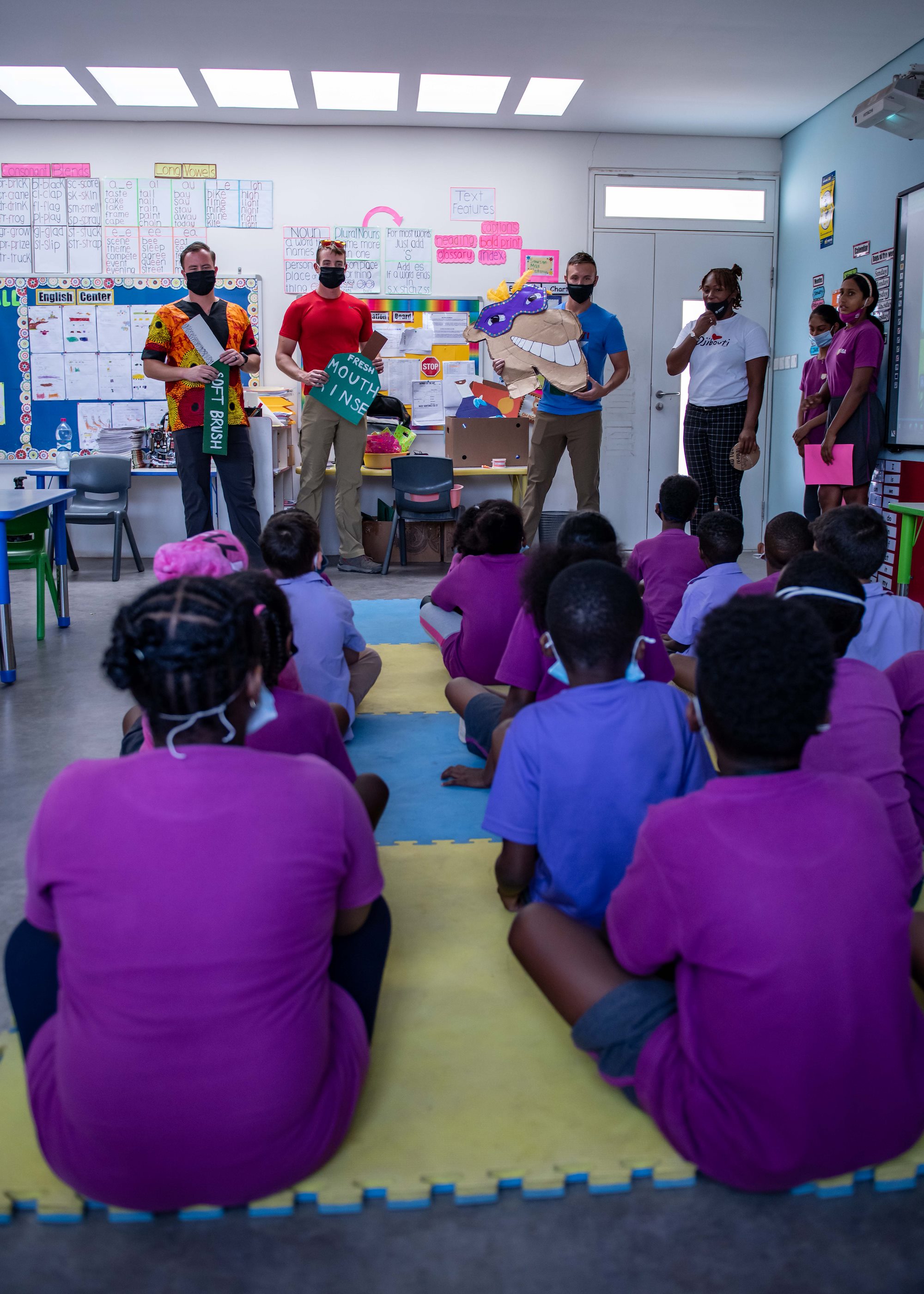 The CA-EA SETAF-AF team members collectively spoke to more than 70 children at the school, reinforcing the focus on preventative oral health care.