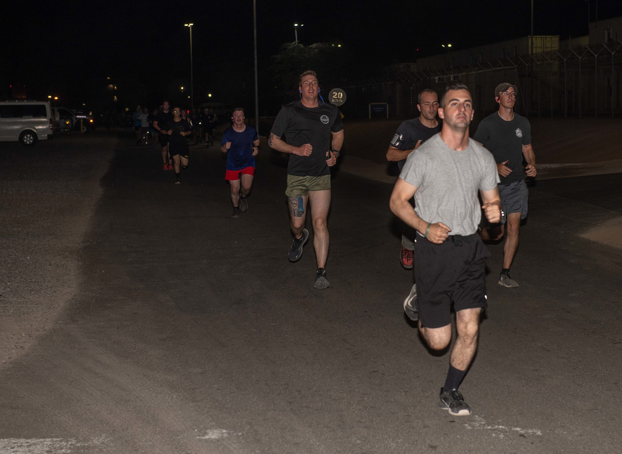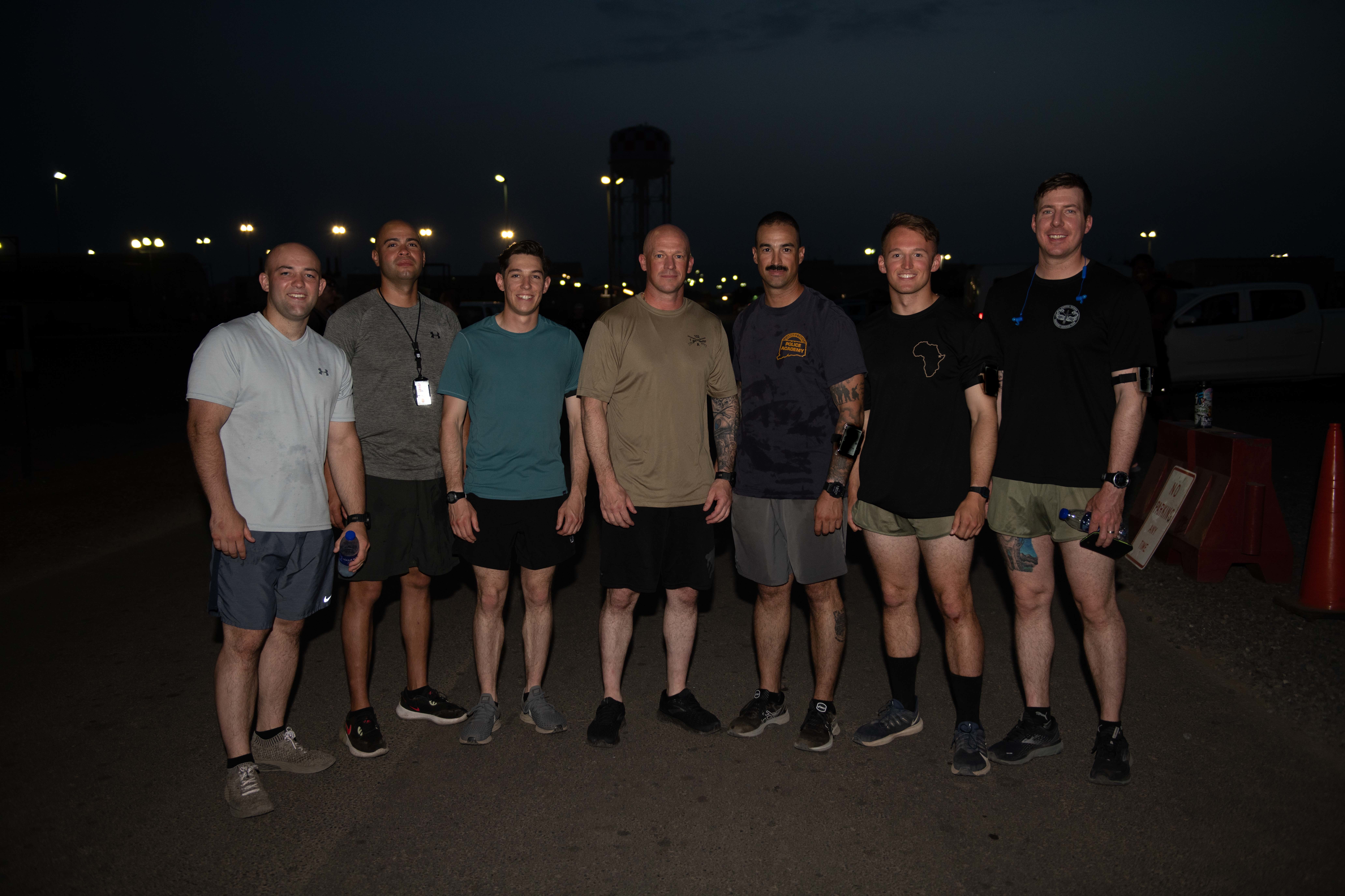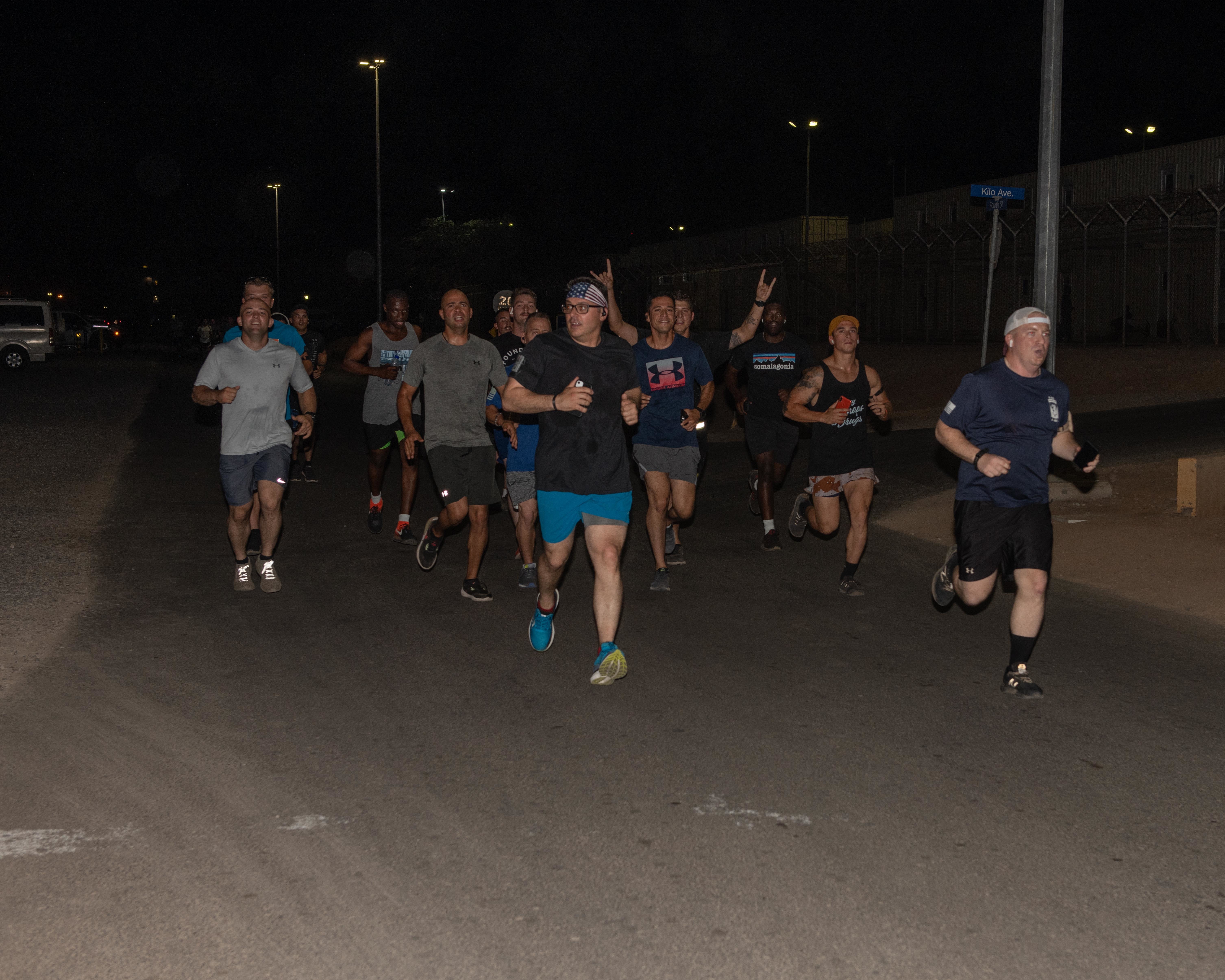 U.S. Army Soldiers with Task Force Iron Gray, in support of Combined Joint Task Force-Horn of Africa (CJTF-HOA), run a 5K in support of the Special Olympics at Camp Lemonnier, Djibouti, June 25, 2021. The Soldiers hosted the run to show support of their Law Enforcement members stateside that have held a Special Olympics Law Enforcement Torch Run in Connecticut for the past 35 years.