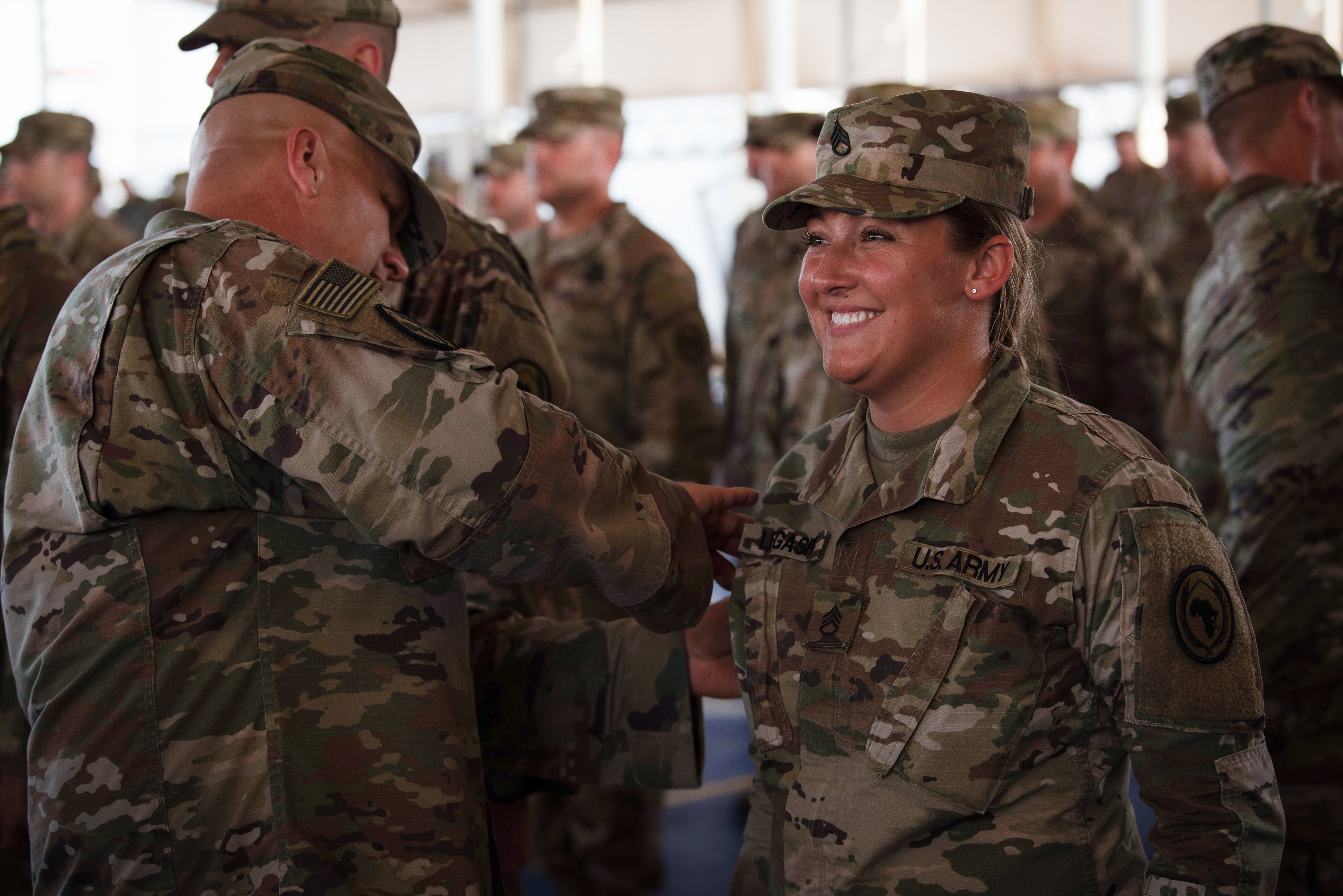 “One thing I really appreciate about the Army is the high standard we hold for recognition,” said Illinois Army National Guard Sgt. Andrea Polizzi, CJTF-HOA and 404th MEB Soldier. “It’s a great reminder of our “why” behind serving and to remember those who came before us. Being here in Africa is an honor and I’m very proud of it”
